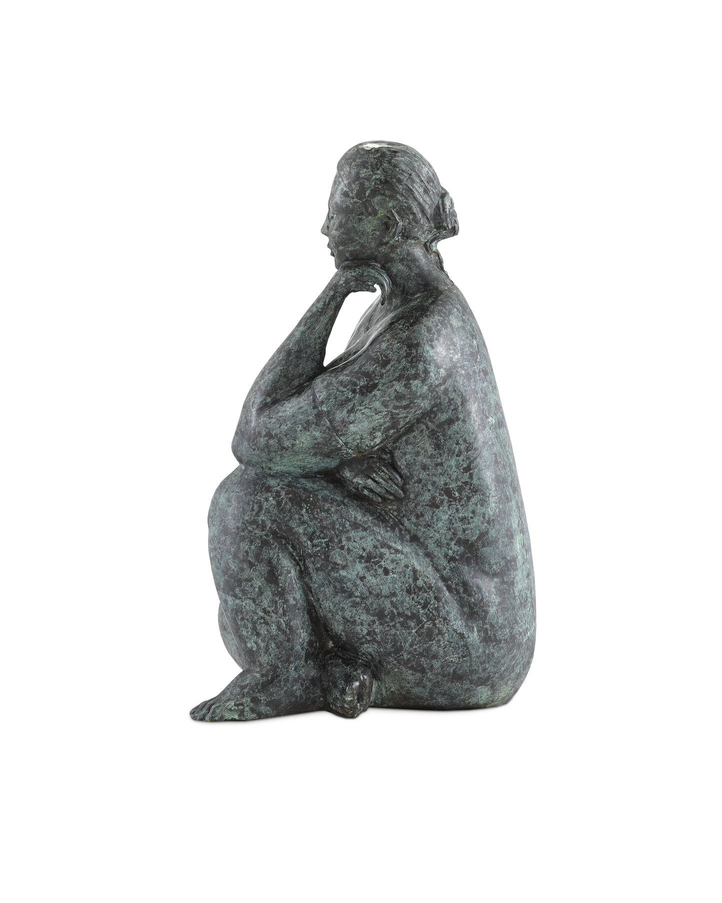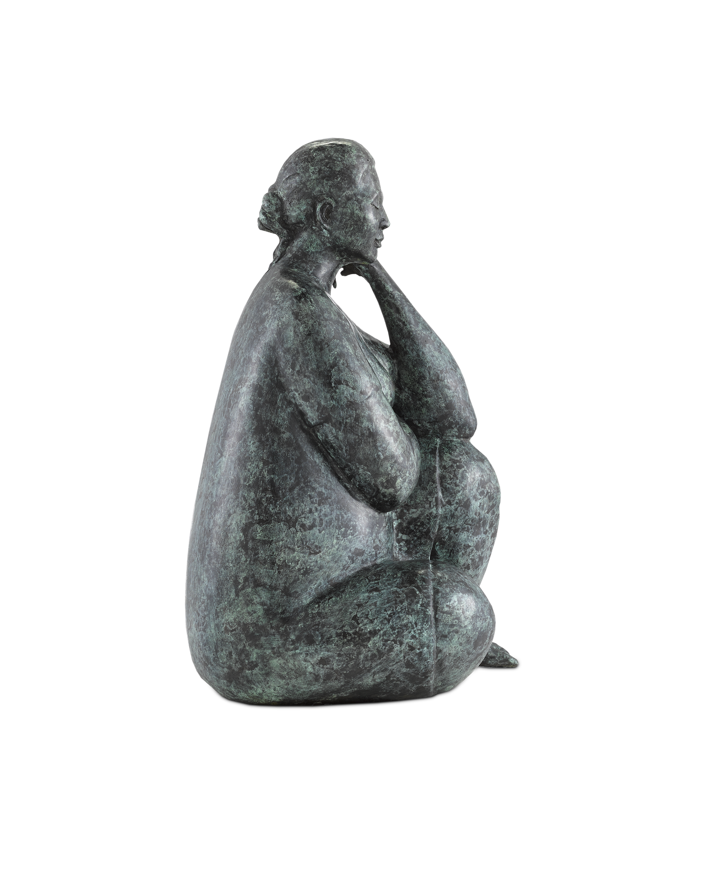 Our Lady Meditating Bronze sculpture is made from a lost-wax technique when boiling bronze is poured into a mold covering an original wax sculpture that melts away. Once set, there is a very long process of refining the bronze to give it patina. This is among our bronze art pieces originally created by an unknown artist.