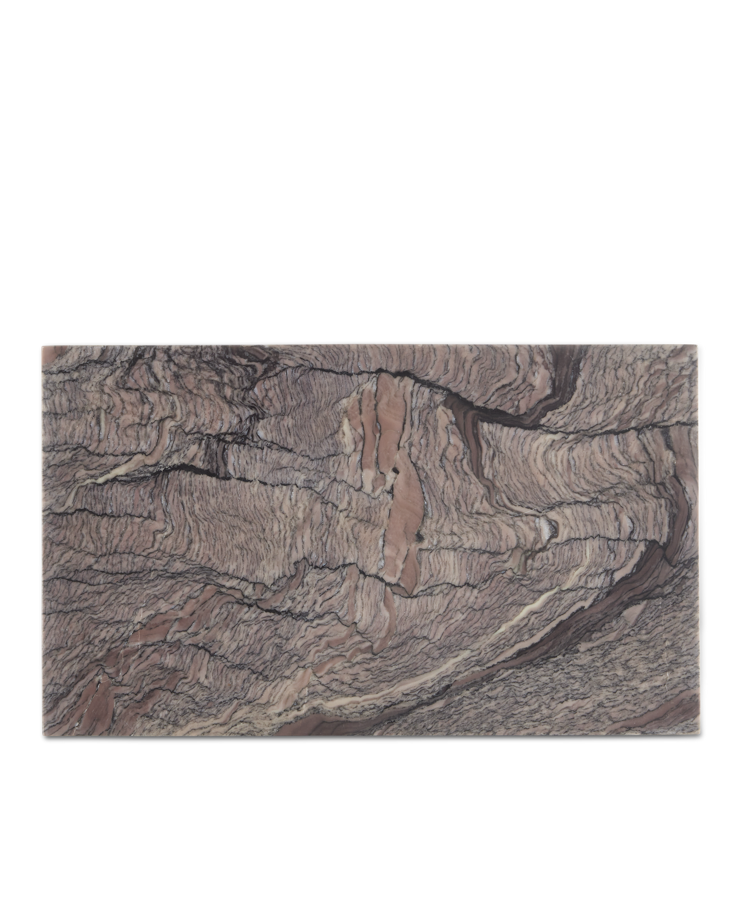 The Leslie Breccia Marble Box is made of Breccia Marble, which will have a tremendous level of variation on the surface from piece to piece. This lovely purple-brown decorative accessory is difficult to make because the box is chamfered as it angles up to the top. This piece continues the exploration of unique materials in boxes with this set of contemporary accessories.
