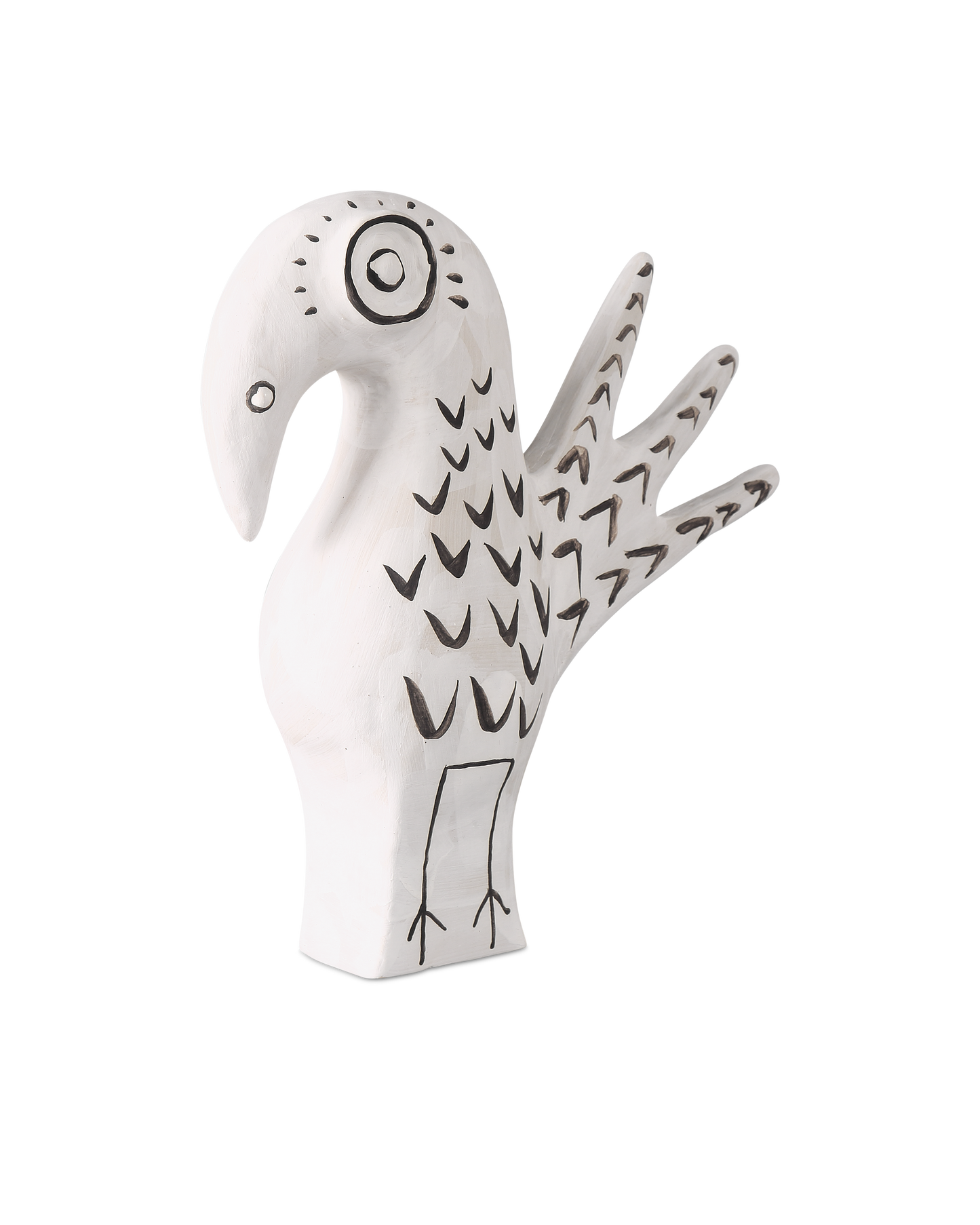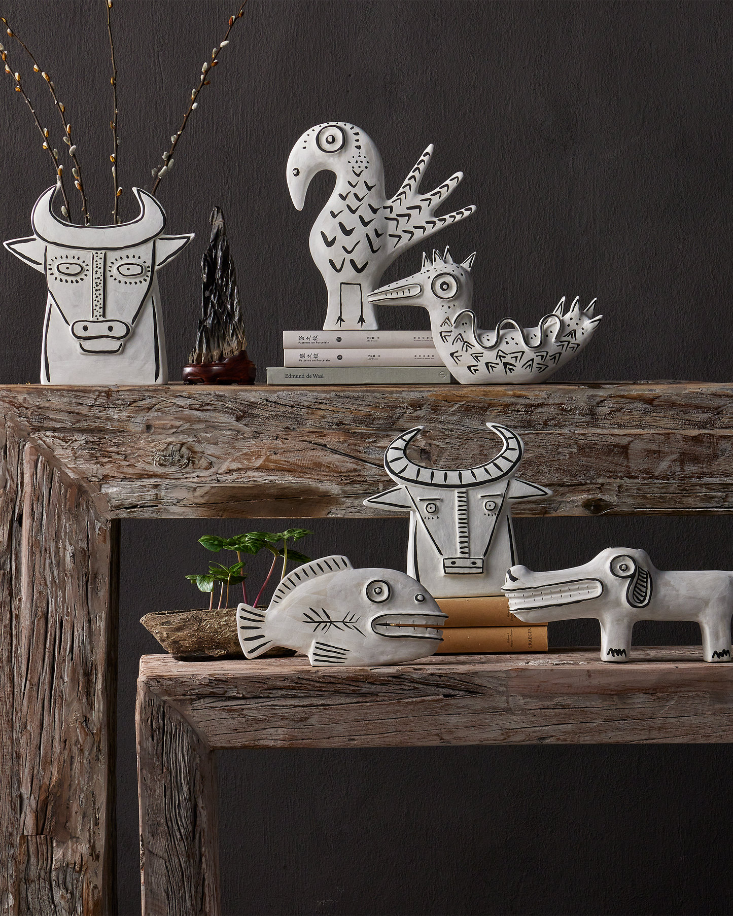 Artist Xiang Yang, a brilliant ceramist, took a walk on the wild side when he created Norman the Peacock. Made of porcelain in a washed-white finish with black whimsical details painted by the artist, the haunting vessel will create a stir not unlike Picasso's work did during his ceramics period as he experimented in the South of France.