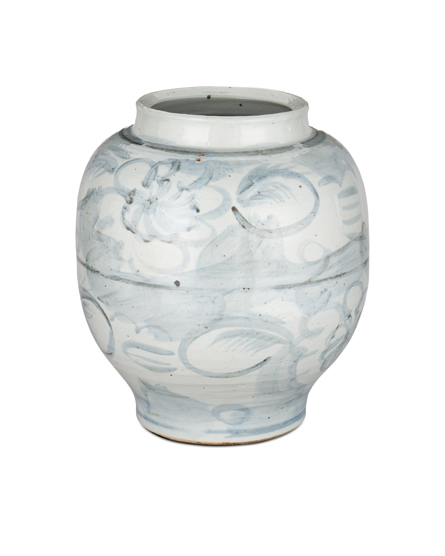 Modern interpretations of the tradition of Chinoiserie that dates back to the great dynasties in Asia, the Ming-Style Countryside Large Preserve Pot is made of porcelain. The design tells its "story" in pale blue motifs on an off-white ground. Because these are artisanal pieces handmade by families with generations of expertise, the color and pattern may vary slightly.