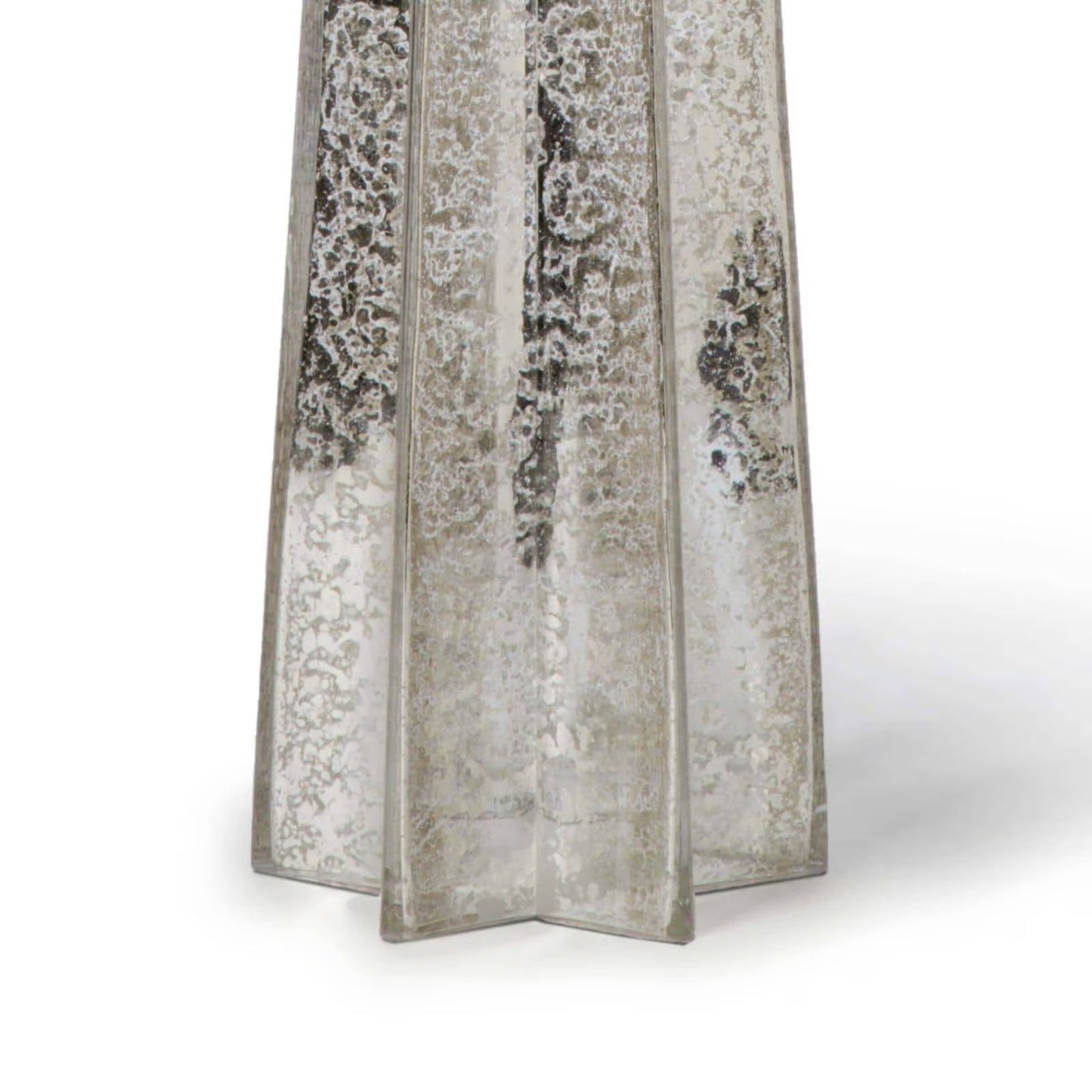 Featuring stunning antique mercury glass formed in a star silhouette, the Glass Star table has endless contemporary styling options. Polished nickel hardware and a tapered natural linen shade beautifully complement the lamp's classic design.