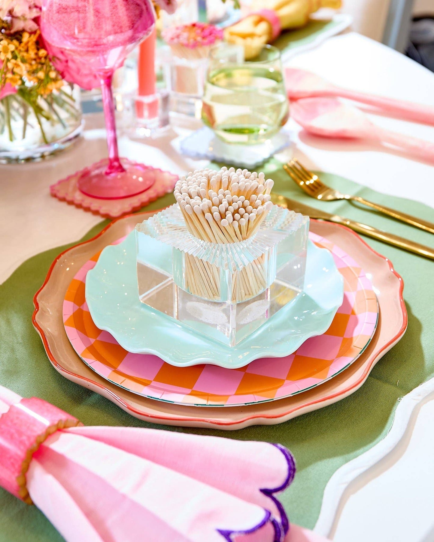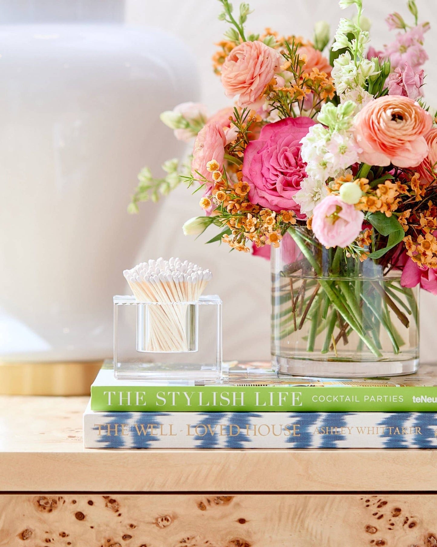 Meet your new flame! Our chic square acrylic match striker is as functional as it is fabulous. Each one comes ready to light with 140 colorful matches and a built-in striker pad on the bottom of the vessel. Designed to double as décor, it’s the perfect little luxury for your coffee table, vanity, or next to your favorite candle. Refillable, reusable, and ridiculously cute - because even lighting a candle should spark joy. - 3.5" L x 3.5" W x 4" H - Includes 140 matches (match refills also available) - Features a match strike pad on bottom for igniting matches - Wipe clean with damp cloth Match Refills