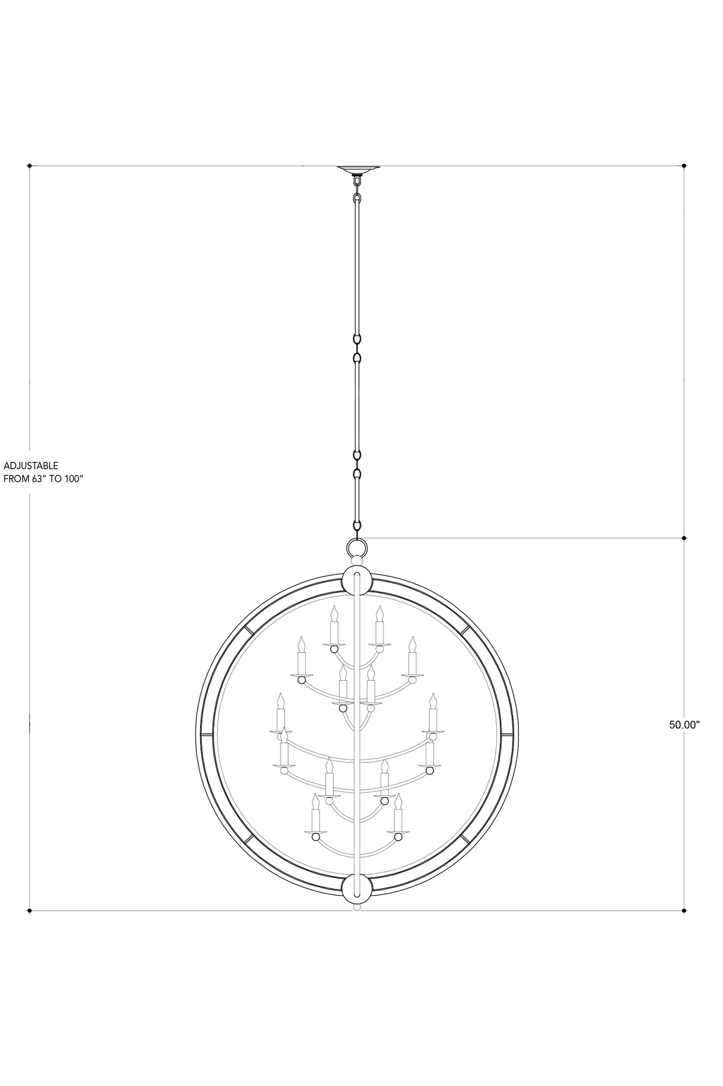 A paragon of beauty, the Aphrodite Orb Chandelier is a large-scale, mirrored chandelier with a classic profile. Spikes of light are set atop gently curving arms in a gold Granello finish. These branch outward from a central column to add luminosity to the oblong rings covered in antique mirror. Adjustable from 63" to 100" with use of included chain/rod kit/cable. If your space calls for a longer drop, additional chain/rods/cable is available for purchase.
