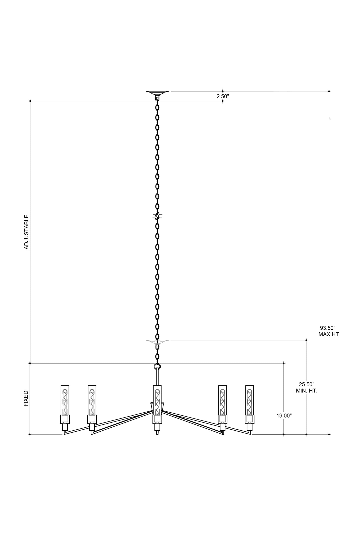 With sharp angles that bring it an industrial feel, the Delgado Chandelier is a perfect fixture for showcasing Edison bulbs, especially tall, lean ones. Made of wrought iron in an antique black finish and wood in a reclaimed wood finish, the black chandelier has clean-lined glass candle sleeves. Adjustable from 25.5" to 93.5" with use of included chain/rod kit/cable. If your space calls for a longer drop, additional chain/rods/cable is available for purchase.