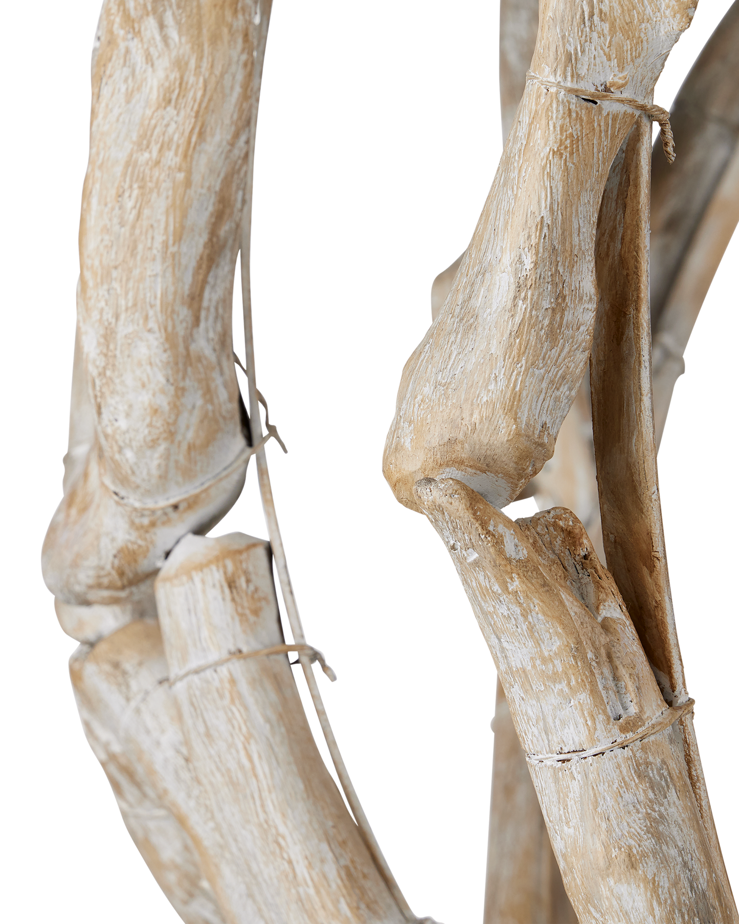 The Driftwood Whitewash Orb Chandelier is crafted from hand-selected pieces of natural driftwood. The wrought iron frame and the wood pieces are in a whitewashed driftwood finish that makes this a seamless tone-on-tone composition. The Driftwood is a perfect choice for any home with coastal or lakeside aesthetics. Adjustable from 37.5" to 105.5" with use of included chain/rod kit/cable. If your space calls for a longer drop, additional chain/rods/cable is available for purchase.