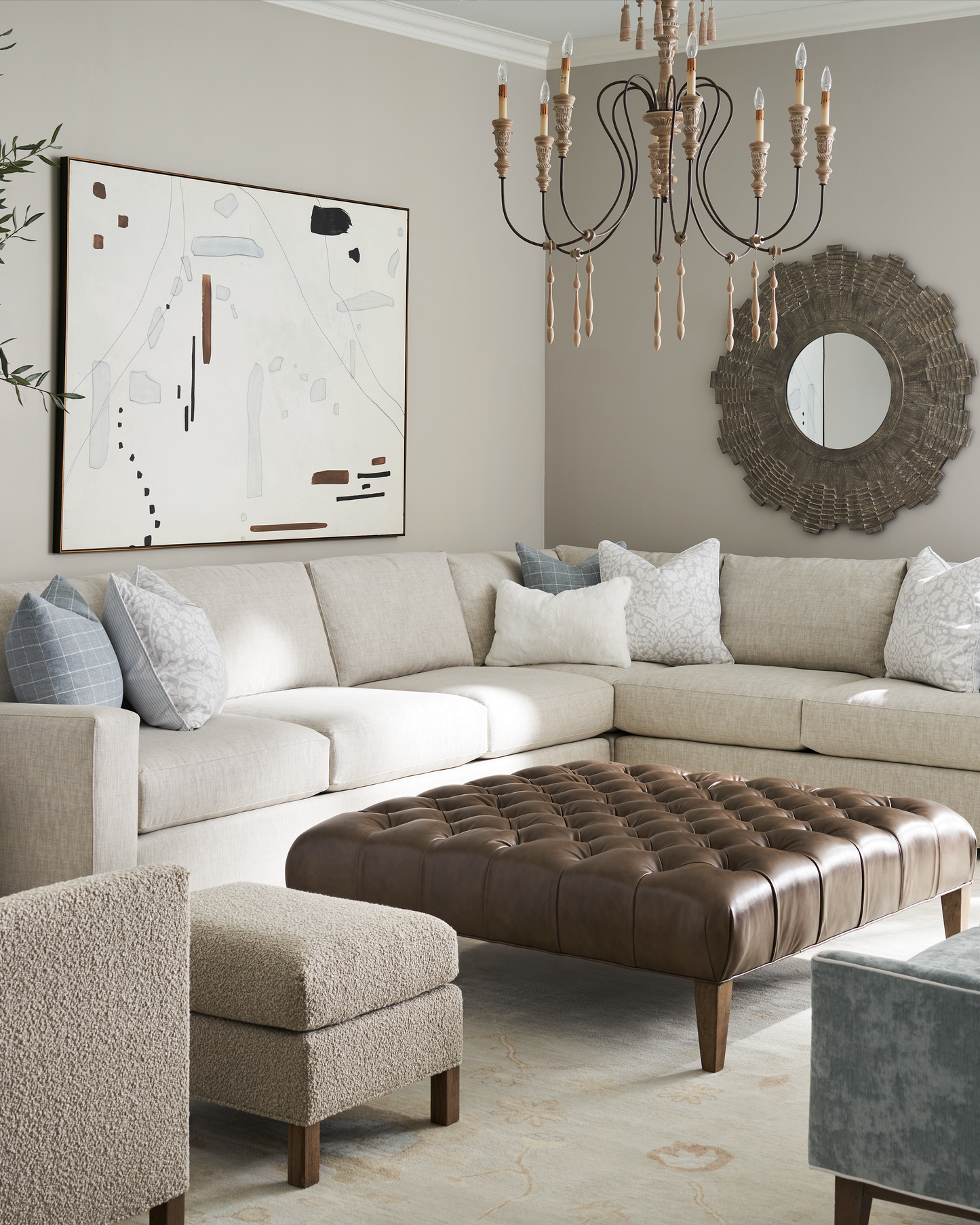 In stock orders will ship within 5-10 business days, while custom upholstery takes approximately 6-8 weeks to ship.