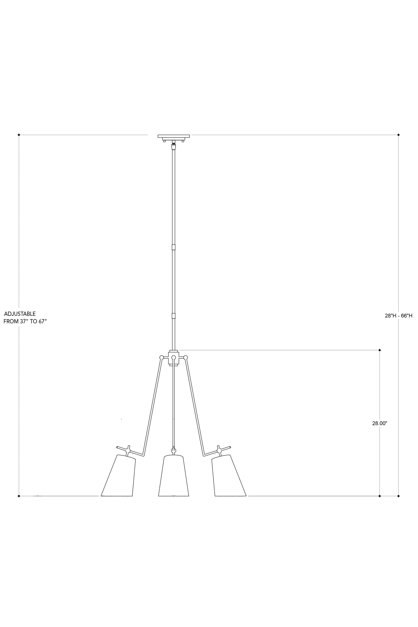 Wrought iron and sheet metal form the Jean-Louis Chandelier with its shades that resemble a classic task light. These give the black chandelier the feel of a mid-century modern icon. The exteriors are hand-finished in Marbella black while the interiors are brilliant in a contemporary gold leaf finish. Adjustable from 37" to 67" with use of included chain/rod kit/cable. If your space calls for a longer drop, additional chain/rods/cable is available for purchase.