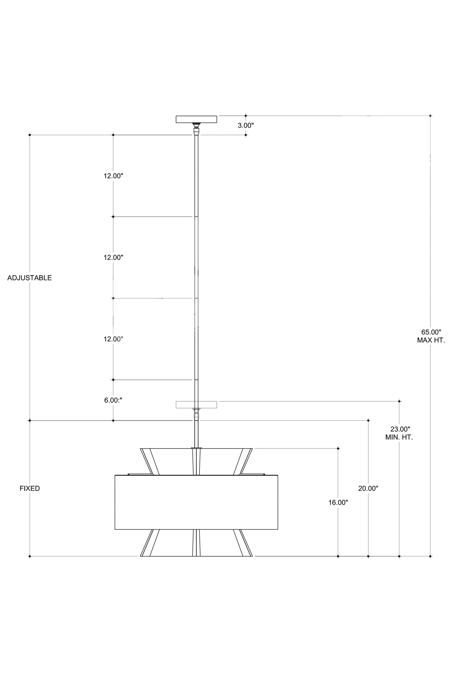 The Oxenwood Chandelier exhibits masculine attributes that will make it a powerful statement piece in a room, as well as a contrasting one. The black shantung shade that wraps artfully around the conjoined fluted metal shapes has a silver lining. Juxtaposed with the brass finish on the wrought-iron, the illumination reflects from both warm and cool surfaces to make the gold and black chandelier gleam. This fixture will shine in transitional, traditional, mid-century modern, and contemporary interiors. Adjustable from 23" to 65" with use of included chain/rod kit/cable. If your space calls for a longer drop, additional chain/rods/cable is available for purchase.