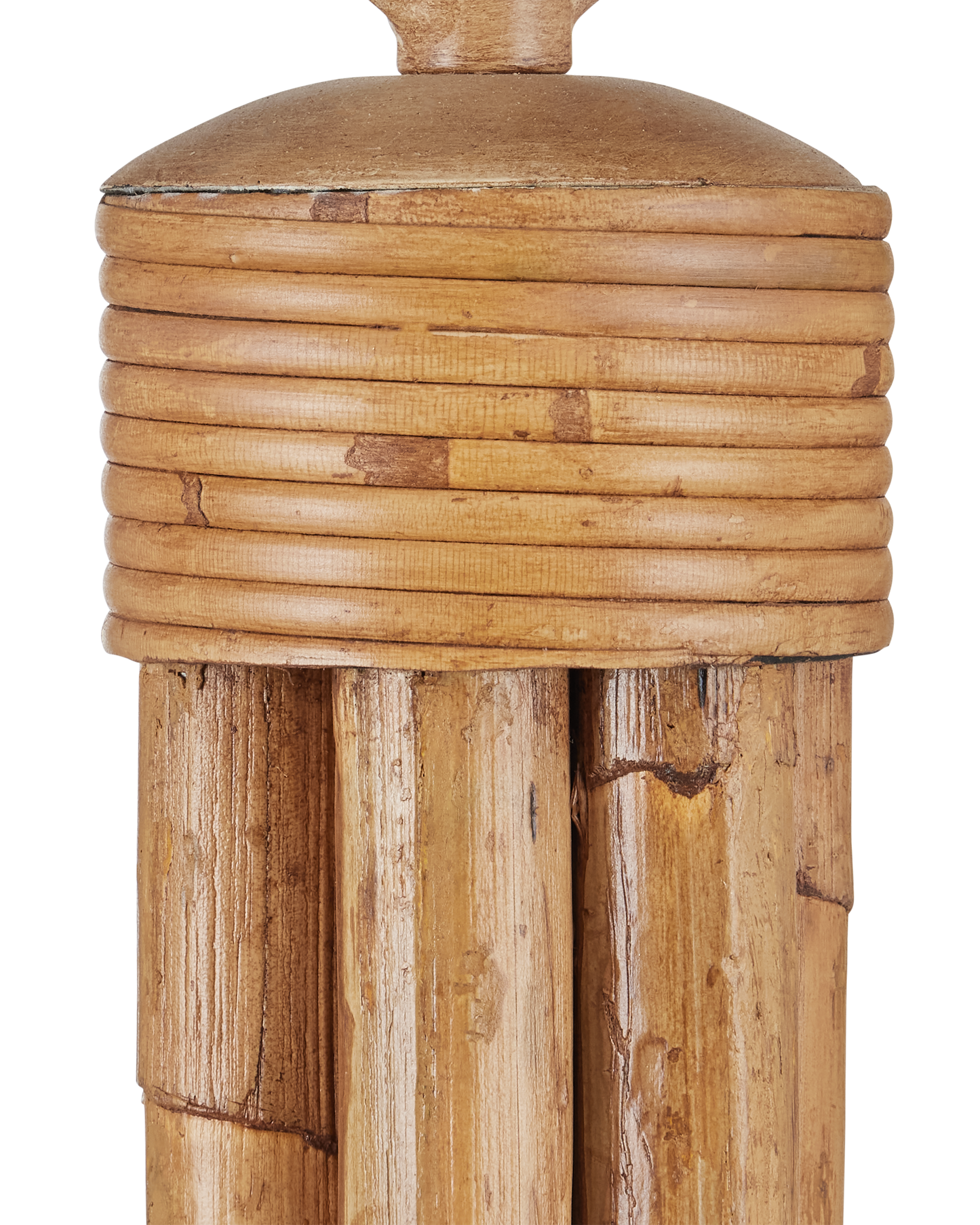 The Samsara Small Chandelier is made from thick reeds of rattan that bend to curve up and hold its six lights, which takes great skill and effort with rattan this sturdy. To keep the aesthetics of the natural tan chandelier clean, the candle sleeves and hardware all but disappear in a saddle tan finish. The thinner reeds that hold these in place are also tonally complementary. Adjustable from 35" to 115.5" with use of included chain/rod kit/cable. If your space calls for a longer drop, additional chain/rods/cable is available for purchase.