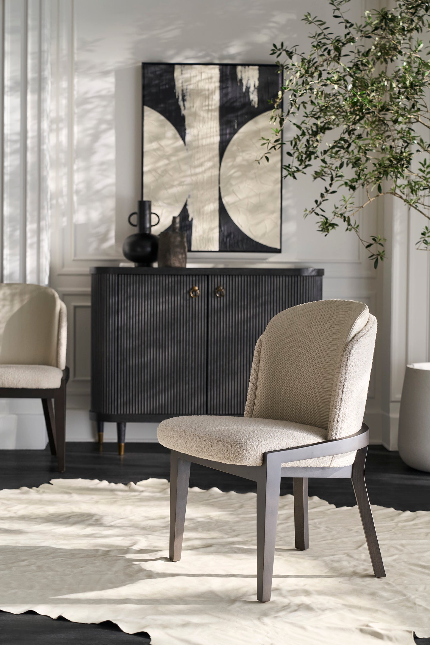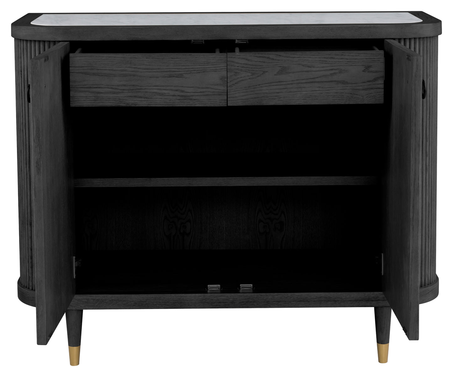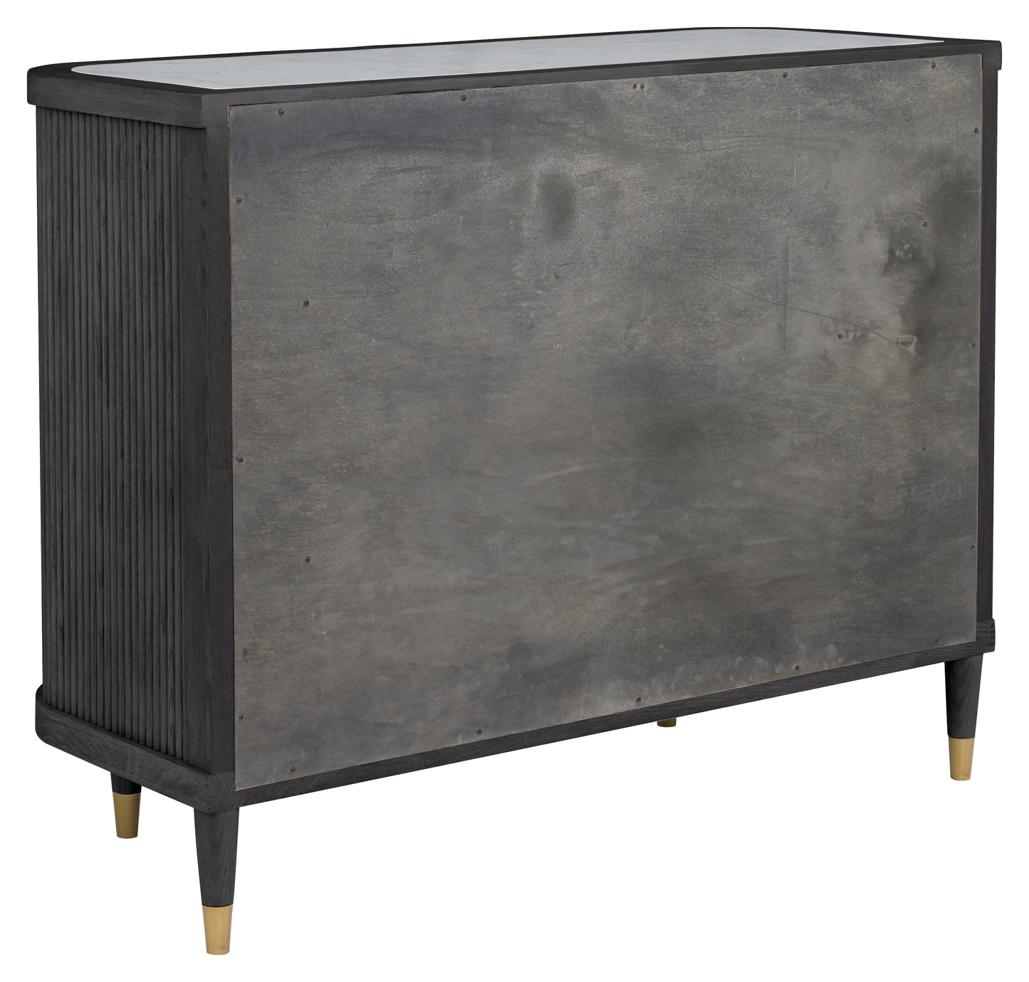 Regular price $2,081.25This sleek charcoal version of the Demilune Credenza brings bold sophistication to your space. Its curved reeded wood front, rich dark finish, and brass-finished feet offer a moody yet refined look. Ideal for entryways, dining rooms, or anywhere stylish storage is needed.