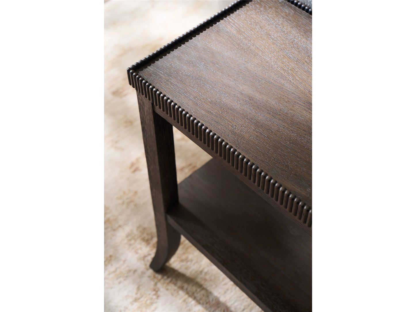 The Cocoa End Table combines practical one-drawer storage with an elegant display shelf featuring distinctive beaded edge detailing. Finished in signature Cocoa oak, this piece provides convenient accent storage while maintaining refined proportions that characterize neoclassical inspiration.