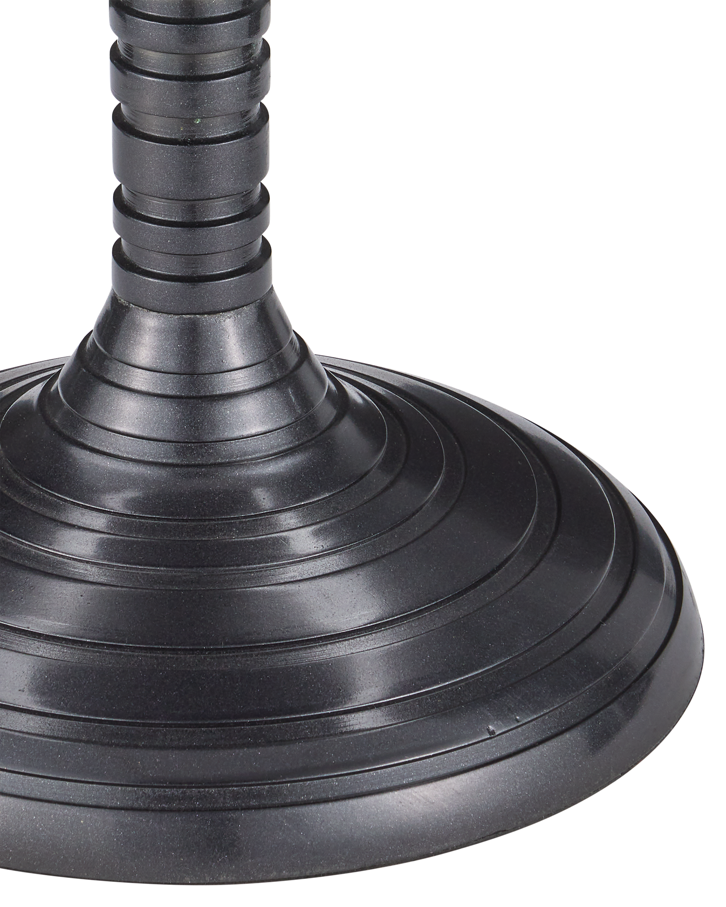 Made of cast aluminum, the Erno Black Accent Table has industrial-leaning style with its turned column that resembles a gear, as well as the concentric circles that flow around its top and the base. The black nickel finish adds to the handsomeness of this piece, which is fitted with a glass top. The Erno is large for an accent table.