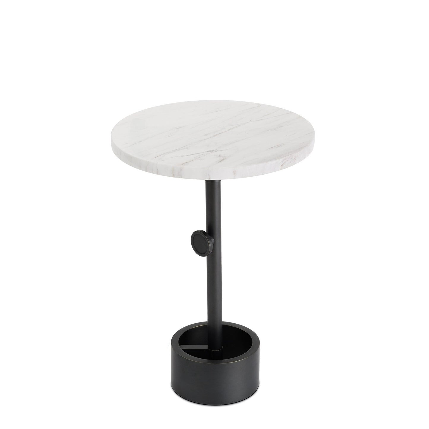 The Myles Accent Table fuses chunky, hardware-inspired elements with sleek modern marble. The table’s adjustable-height base plays on industrial style, while its marble top ties in classic elegance.