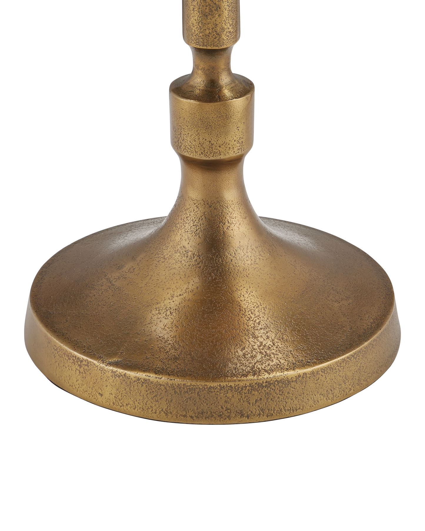 The Pascal Brass Accent Table with its rugged masculinity is a nod to the machine age. The vintage brass finish provides its tool-like shape with an added dose of handsomeness. The warmth the finish brings and the textural interest the surface provides will make this a favorite brass accent table in any interior.