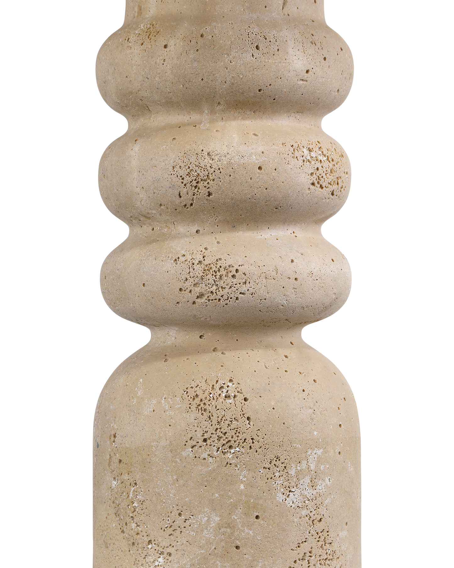 The Rocco Accent Table is made of faux travertine, a blend of stone powder and composite that is expertly finished to mimic the warm, natural beauty of of the stone. The tan table has a gracefully turned pedestal that makes it fitting for an array of styles, from contemporary interiors to traditional rooms. The Rocco rises to nearly 20 inches tall.