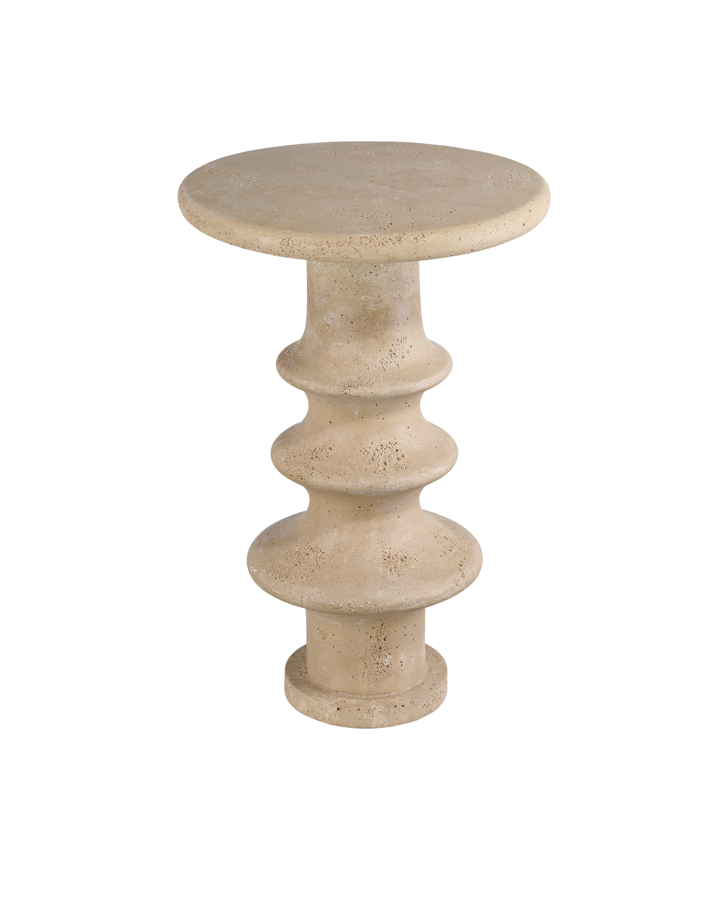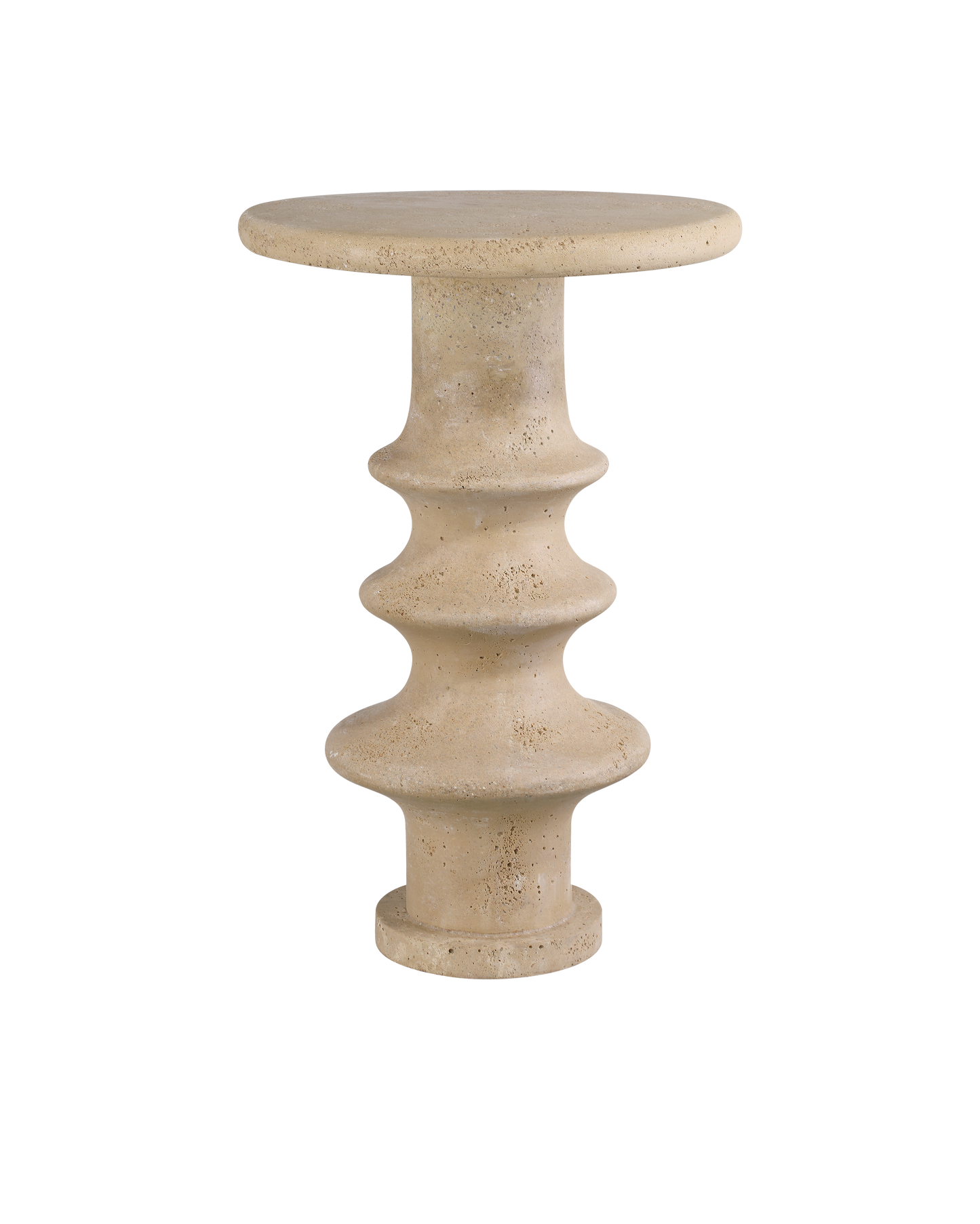 The Rollins Accent Table is made of faux travertine, a blend of stone powder and composite that is expertly finished to mimic the warm, natural beauty of the stone. The tan table has a gracefully fluted pedestal that makes it fitting for an array of styles, from contemporary interiors to traditional rooms. The Rollins rises from an understated base to culminate at nearly 2 feet tall.