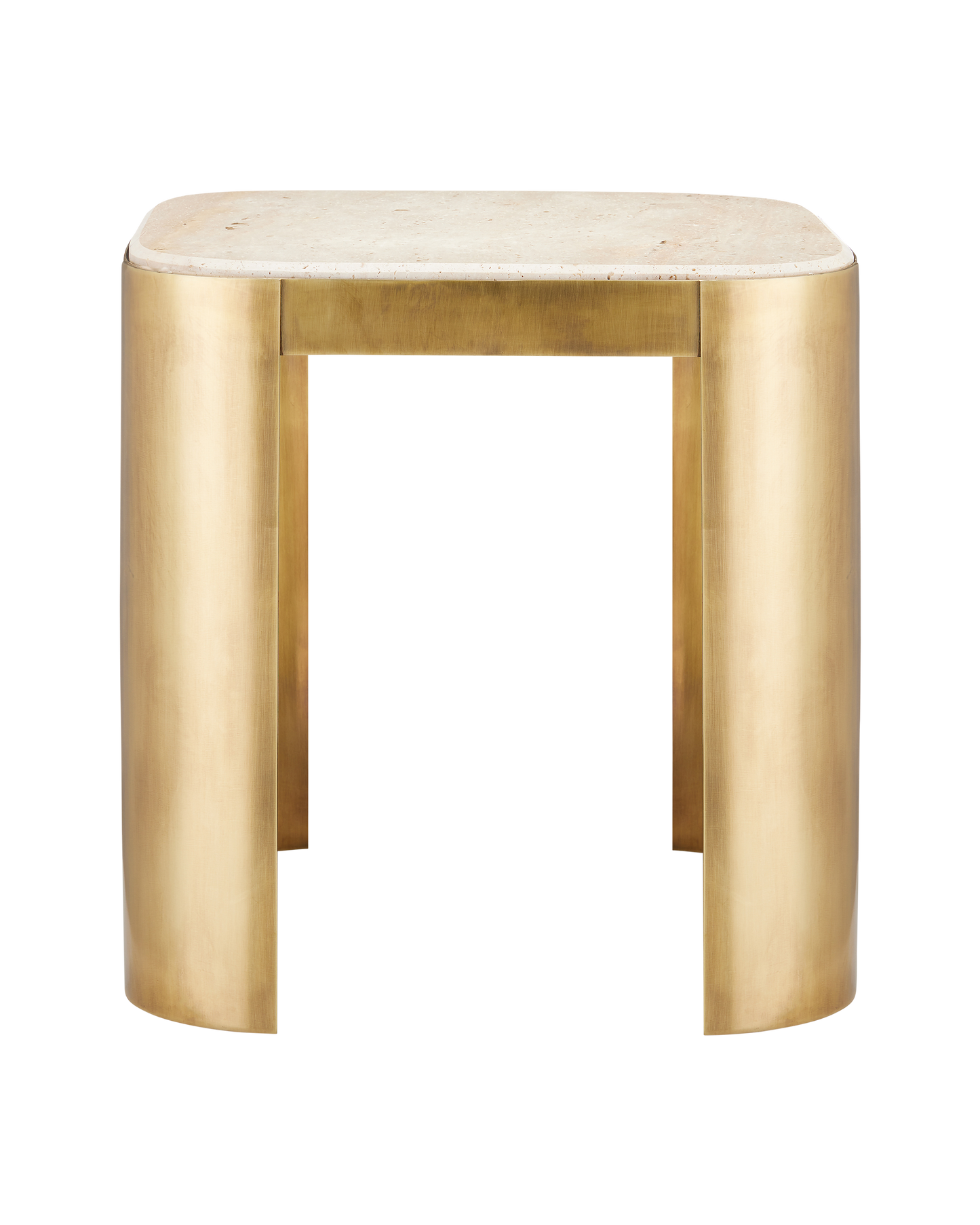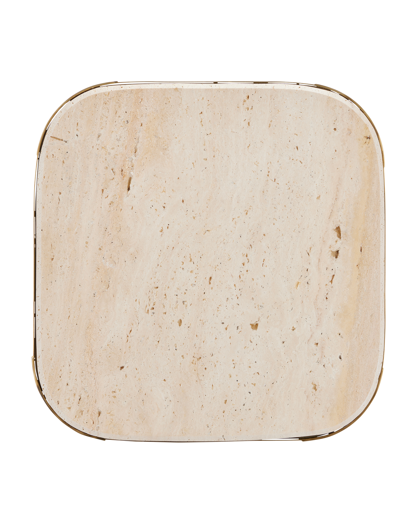 At the top of the mod-squad list, the Sev Travertine Accent Table has a shape that looks back to the past but with forward-thinking finishing techniques. The stainless steel table with a contemporary shape has a gold finish. The natural travertine top sits proud so it will always stay in place. Due to the nature of travertine, there will be color and texture variations.