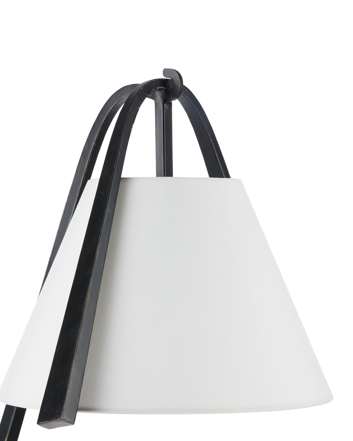 The Frey Floor Lamp brings high style to task lighting with its steel construction in a satin black finish and brushed brown accents. The off-white shantung shade, fitted to the curving arm, adds a refined touch to the design, lending the profile a subtle Asian flair. The stacked base showcases engineered precision while creating a wonderful sense of balance as it extends to the point where the bands holding the shade taper down.