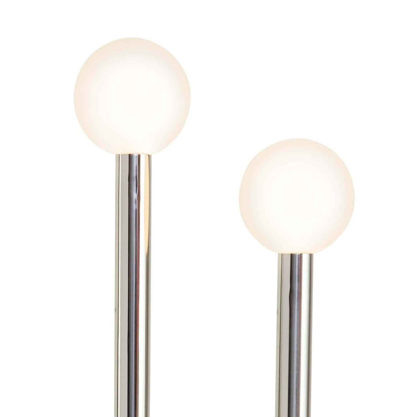 The Happy Floor Lamp is a unique mix of modern and playful. Happy's simple, asymmetrical charm creates uplifting illumination perfect for an entryway, bedroom, or living space. The lamp's metal tube frame, cylindrical base, and contrasting matte white glass globes create an elevated take on a playful shape.