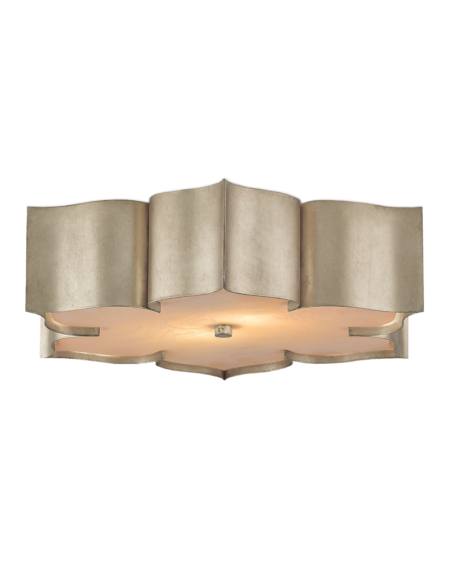 The Grand Lotus Silver Flush Mount receives its majestic good looks from a combination of stunning workmanship and antique contemporary silver leaf finish. The silver flush mount is skillfully fashioned from wrought iron.