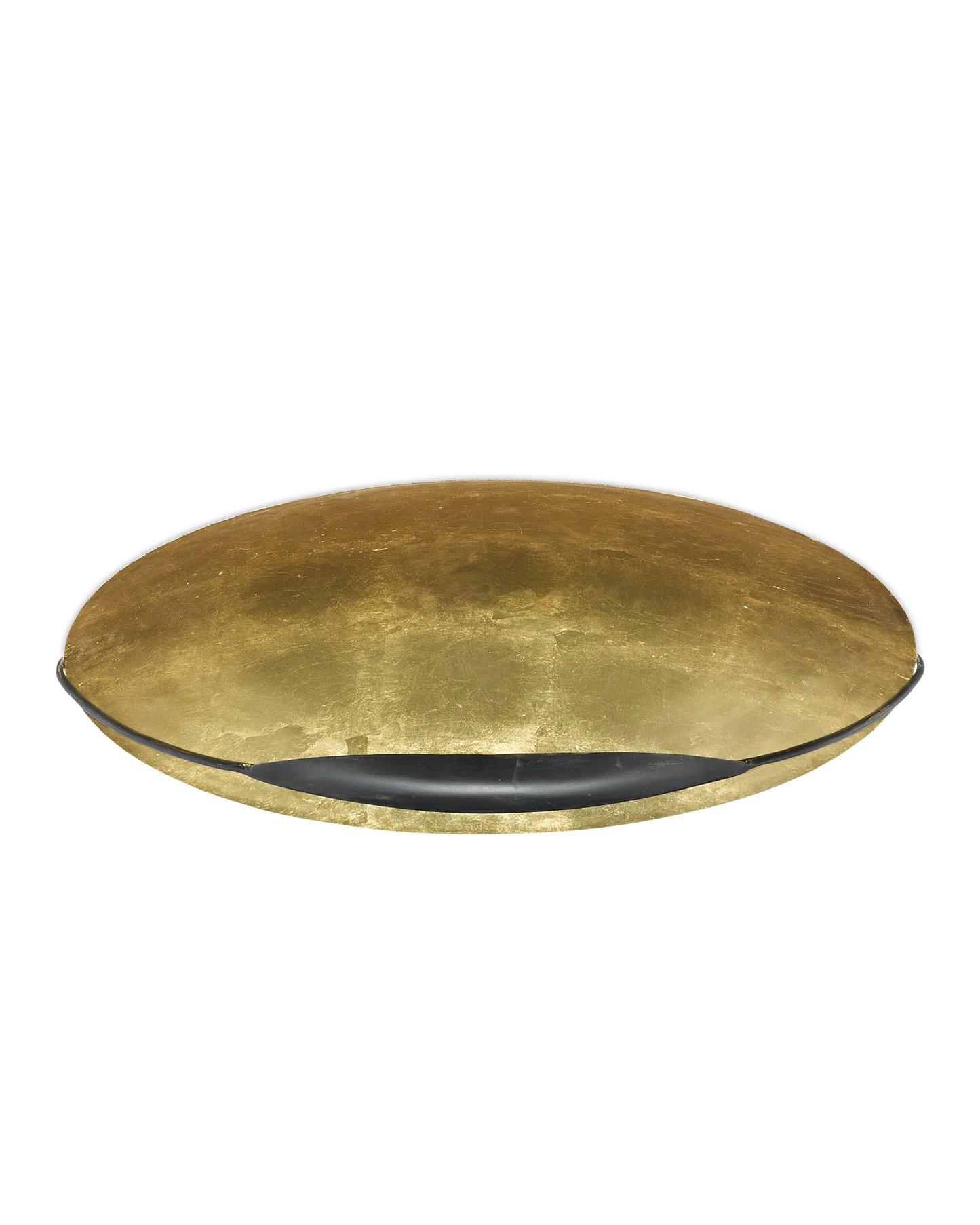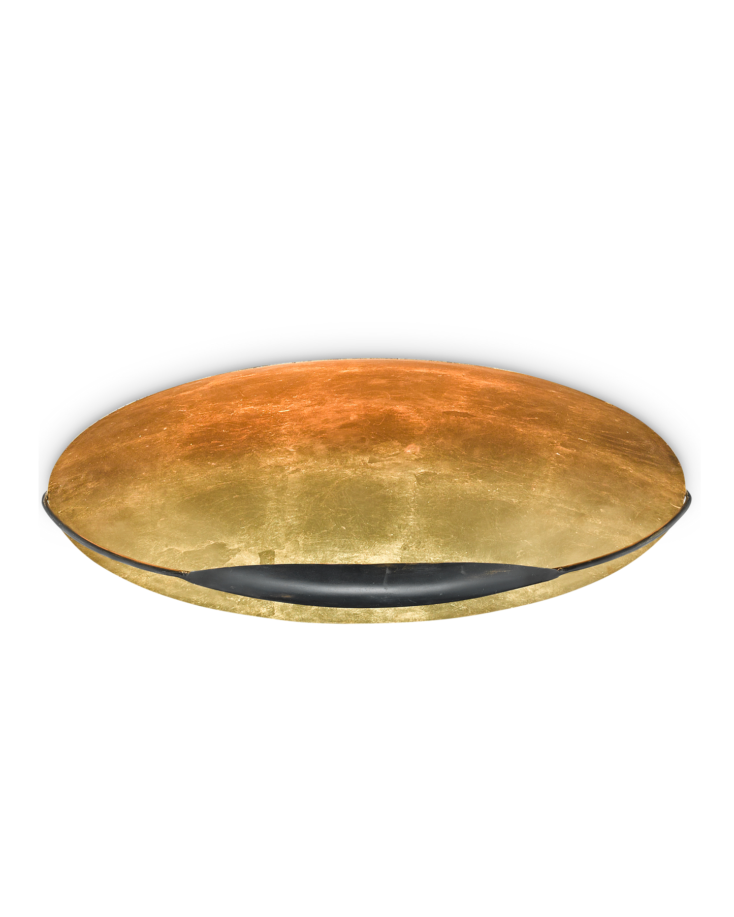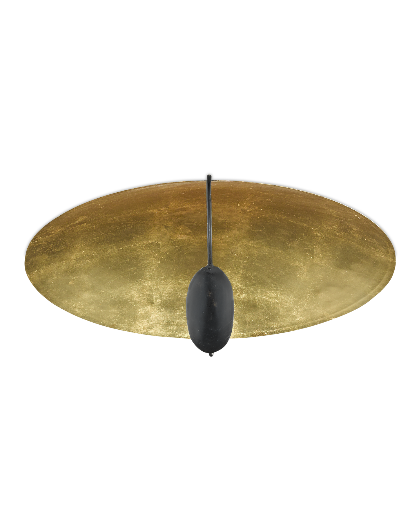 The Pinders Flush Mount is made of wrought iron in a contemporary gold finish. A design note of merit is how the bulb is set within a cup-like extension that is affixed to the thin, curved arm in a French black finish. When the light reflects off the gold interior, it intensifies the warmth of the illumination.