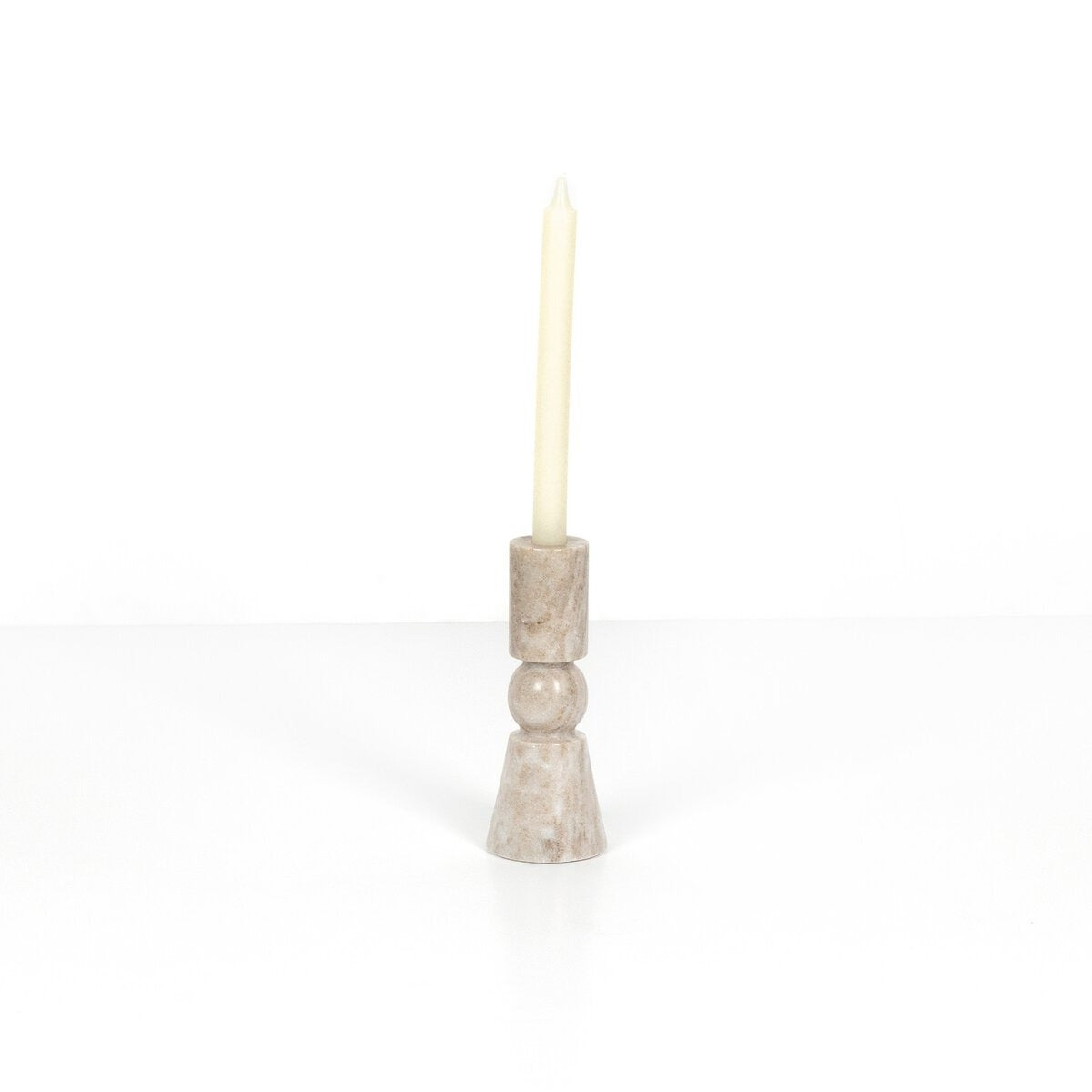Rosette Taper Candlesticks - Creamy Taupe Marble Solid