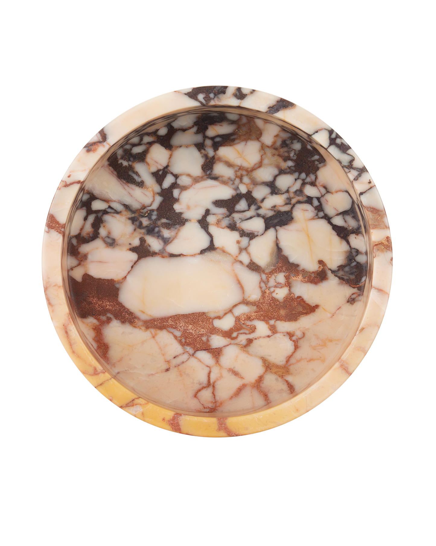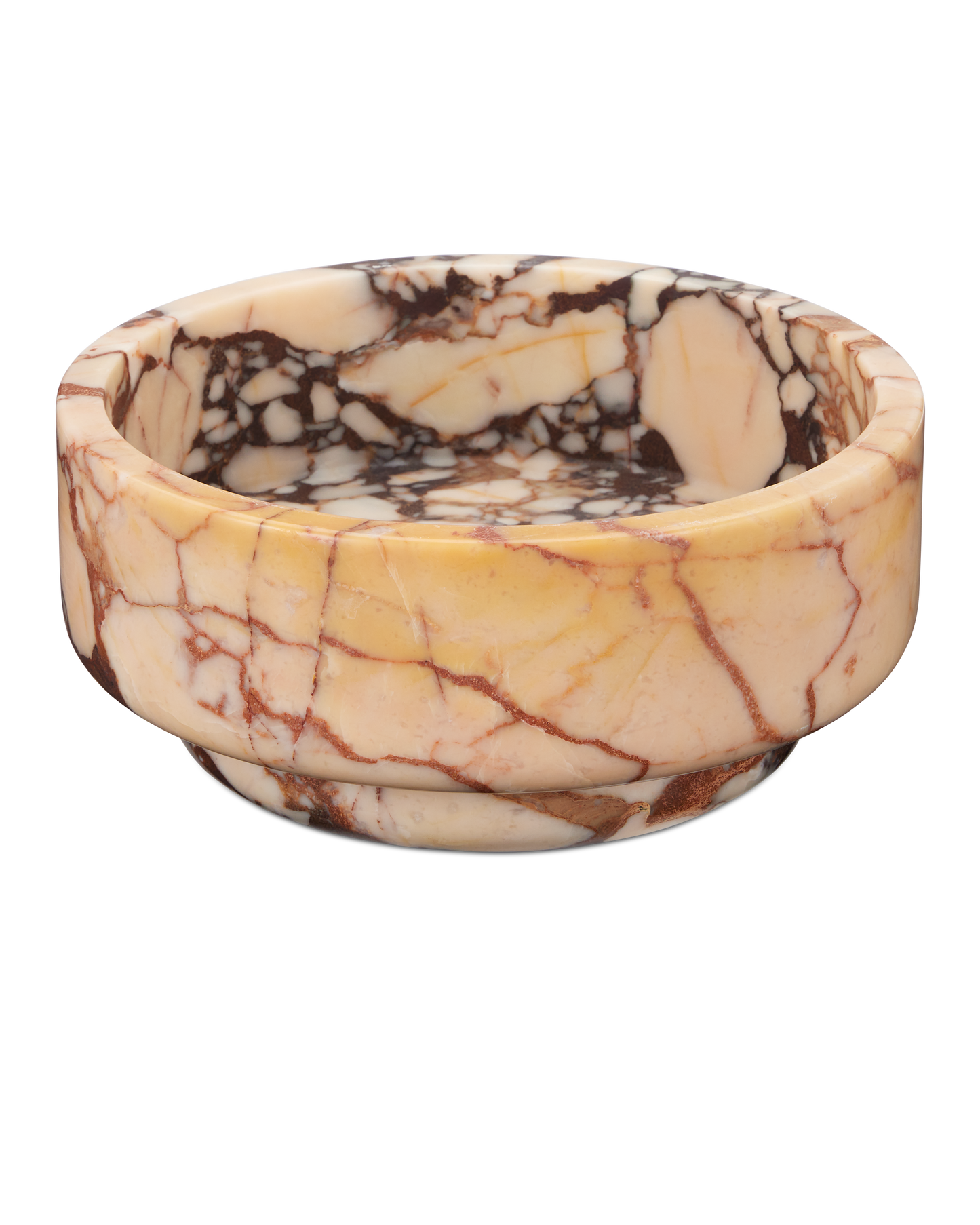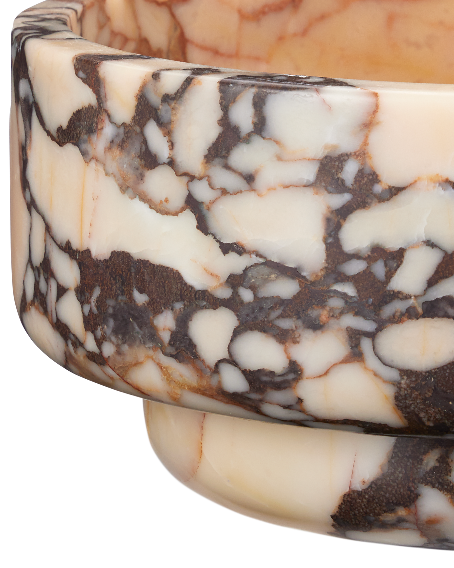The Digby Small Bowl illustrates how artful nature can be. Made of Purple Breccia marble, the complex patterning of the stone makes this a natural focal point for a vignette, or a stunning specimen for holding fruits or vegetables, or left to stand on its own. The peach and purple decorative bowl will stand out whatever its purpose will be.