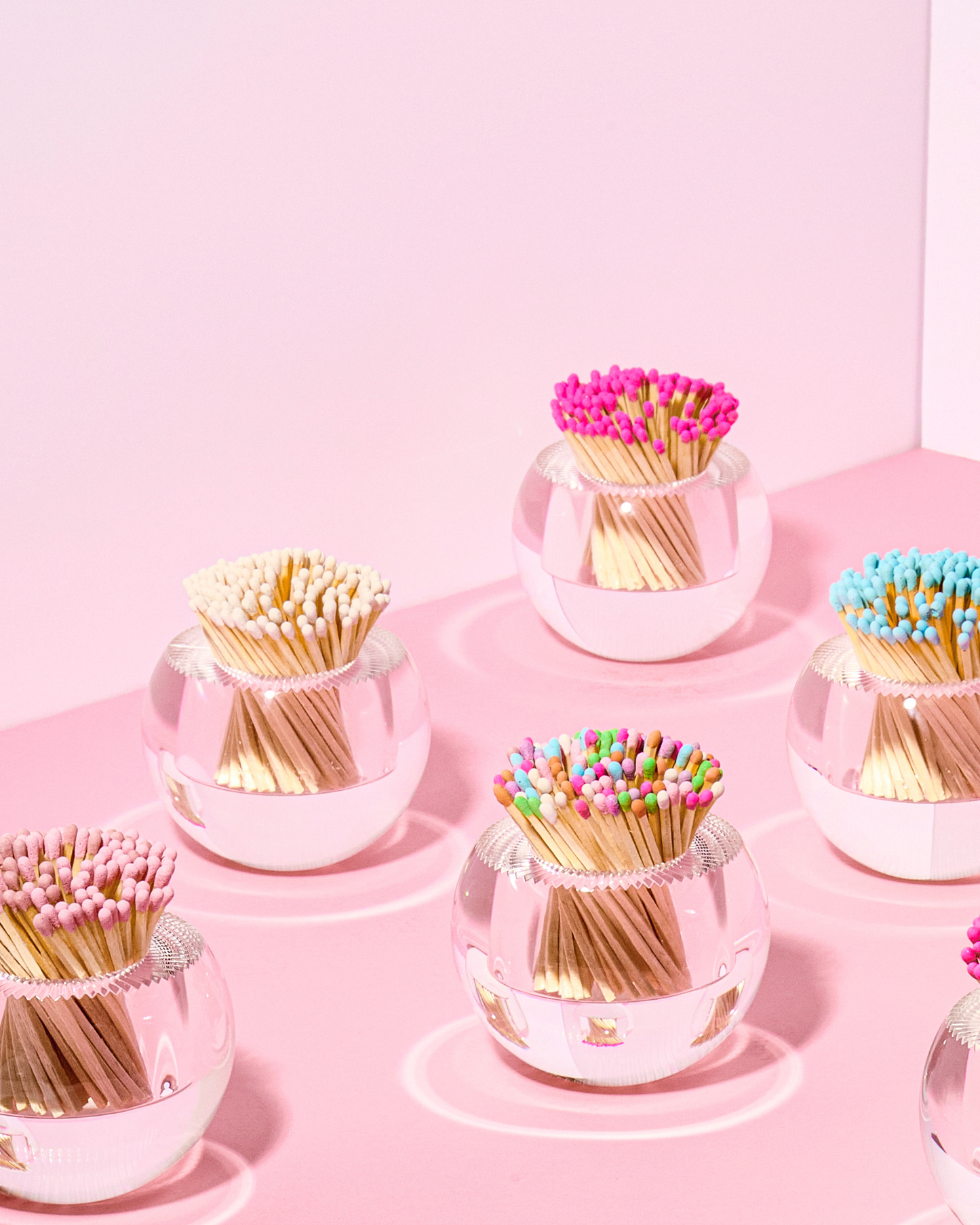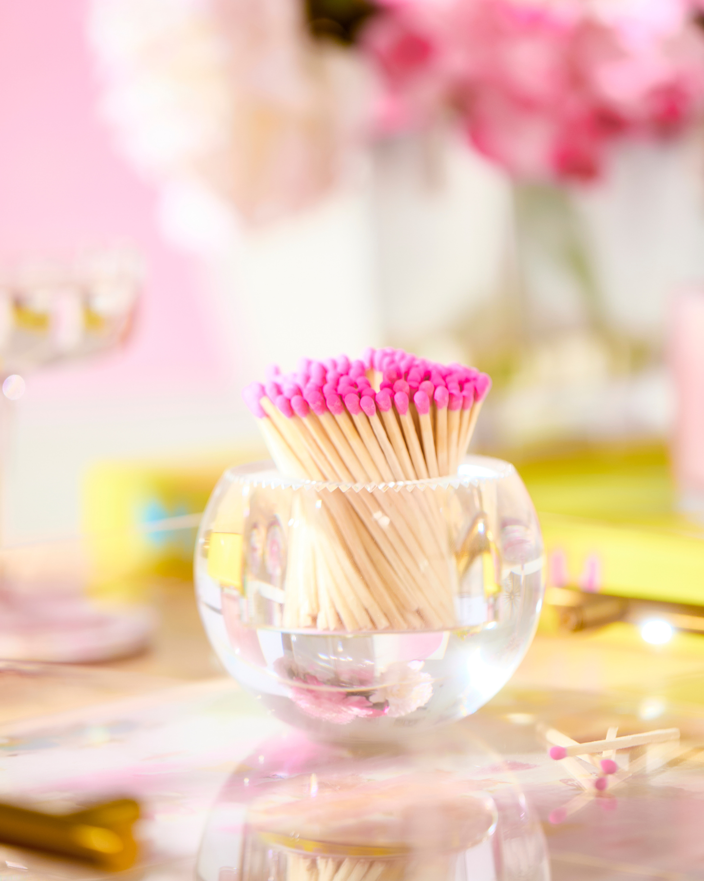 Get fired up with our Acrylic Match Striker! This acrylic match strike is the perfect accessory for your coffee table, desk, or any space that could use a little flair. It features a strike pad on the bottom and comes with 140 matches. Keep this baby ready for any occasion, let's get lit! -3.5'' Diam x 3'' H -Includes 140 matches (match refills also available) -Features a match strike pad on bottom for igniting matches -Wipe clean with damp cloth Match Refills