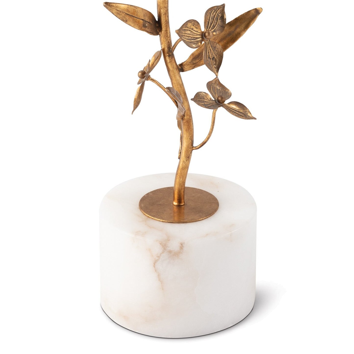 Bring the feel of an upscale lounge to your home, where you can sip and relax with the Trillium Martini Table. Antique gold leaf gilded branches and an alabaster base make up the body of this charming piece. Nested between a pair of sofas or love seats, this table will become an elevated accent that adds glamour to your style in every way.