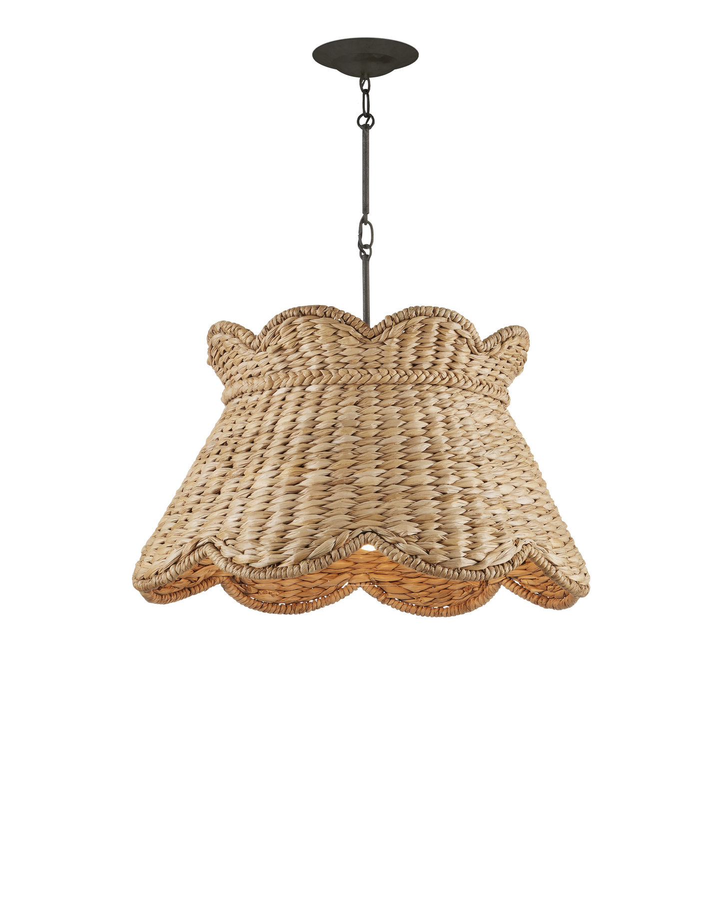 Suzanne Duin, who founded the Houston shop and design studio Maison Maison, conceived the Annabelle Large Pendant. Known for a keen eye in sourcing authentic French antiques and home accessories from around the globe, Suzanne created a line of woven light fixtures that are handmade by artisans in South Asia. The shade, made of water hyacinth, will bring both texture and French flair to a space, the braided edges fine treatments that reflect Parisian style. Infuse a breakfast nook with the lore of the citys famous cafés with this woven pendant, which is au courant in a mix of natural and mole black finishes. Adjustable from 22.75" to 68.75" with use of included chain/rod kit/cable. If your space calls for a longer drop, additional chain/rods/cable is available for purchase.