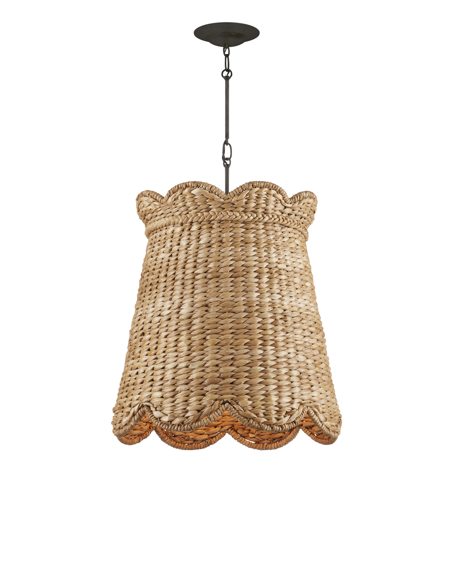 Suzanne Duin, who founded the Houston shop and design studio Maison Maison, conceived the Annabelle Medium Pendant. Known for a keen eye in sourcing authentic French antiques and home accessories from around the globe, Suzanne created a line of woven light fixtures that are handmade by artisans in South Asia. The shade, made of water hyacinth, will bring both texture and French flair to a space, the braided edges fine treatments that reflect Parisian style. Infuse a breakfast nook with the lore of the citys famous cafés with this woven pendant, which is au courant in a mix of natural and mole black finishes. Adjustable from 30.5" to 76.5" with use of included chain/rod kit/cable. If your space calls for a longer drop, additional chain/rods/cable is available for purchase.
