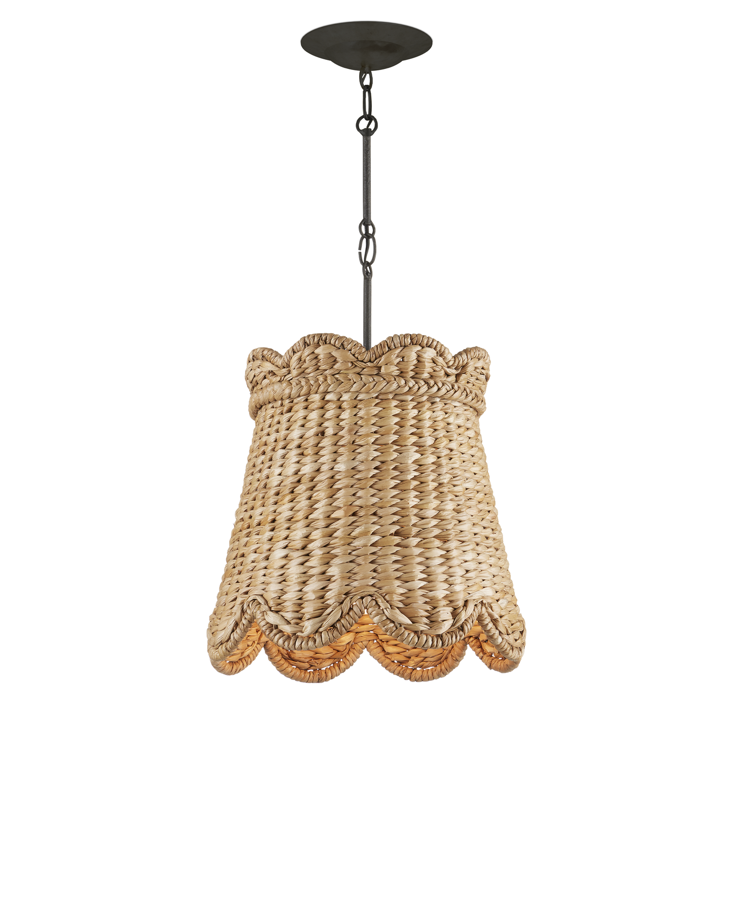 Suzanne Duin, who founded the Houston shop and design studio Maison Maison, conceived the Annabelle Small Pendant. Known for a keen eye in sourcing authentic French antiques and home accessories from around the globe, Suzanne created a line of woven light fixtures that are handmade by artisans in South Asia. The shade, made of water hyacinth, will bring both texture and French flair to a space, the braided edges fine treatments that reflect Parisian style. Infuse a breakfast nook with the lore of the citys famous cafés with this woven pendant, which is au courant in a mix of natural and mole black finishes. Adjustable from 23" to 69" with use of included chain/rod kit/cable. If your space calls for a longer drop, additional chain/rods/cable is available for purchase.