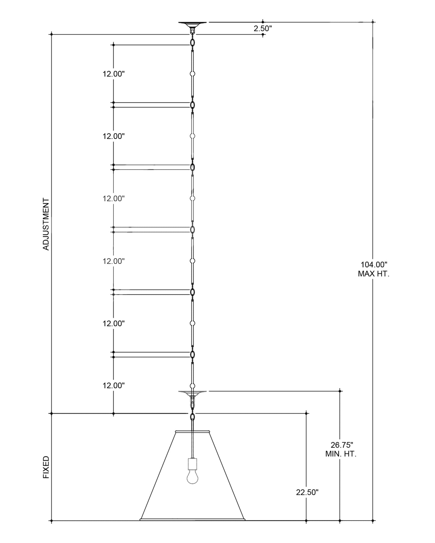 The Pierrepont Large Blue Pendant is made of wrought iron with a Hiroshi Dark Blue finish on its exterior and a contemporary gold leaf finish on the interior of its shade. The rolled edges of the rings connecting them, at the top and bottom of the pendant, gleam in a gold finish and are sophisticated details that bring an uptick in style to this handsome fixture. When simplicity is the aim, the Pierrepont will fit right in given the clean lines of the fixture's profile and its hanging hardware. Adjustable from 26.75" to 104" with use of included chain/rod kit/cable. If your space calls for a longer drop, additional chain/rods/cable is available for purchase.