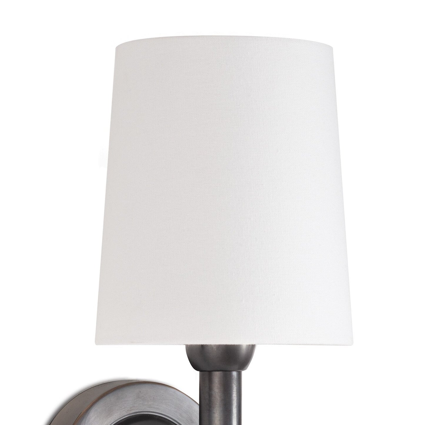 The classic sconce shape of the Jameson fixture is elevated with a modern twist. Jameson's fully metal frame is crafted from simple, geometric shapes that give it both a traditional and modern edge. A natural linen tapered shade completes the look. Place this versatile sconce on either side of a bed, in an entryway, flanking a powder room mirror, or anywhere needing a bit of dimensional illumination.
