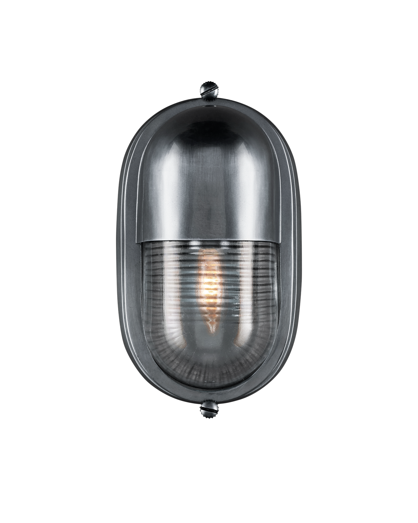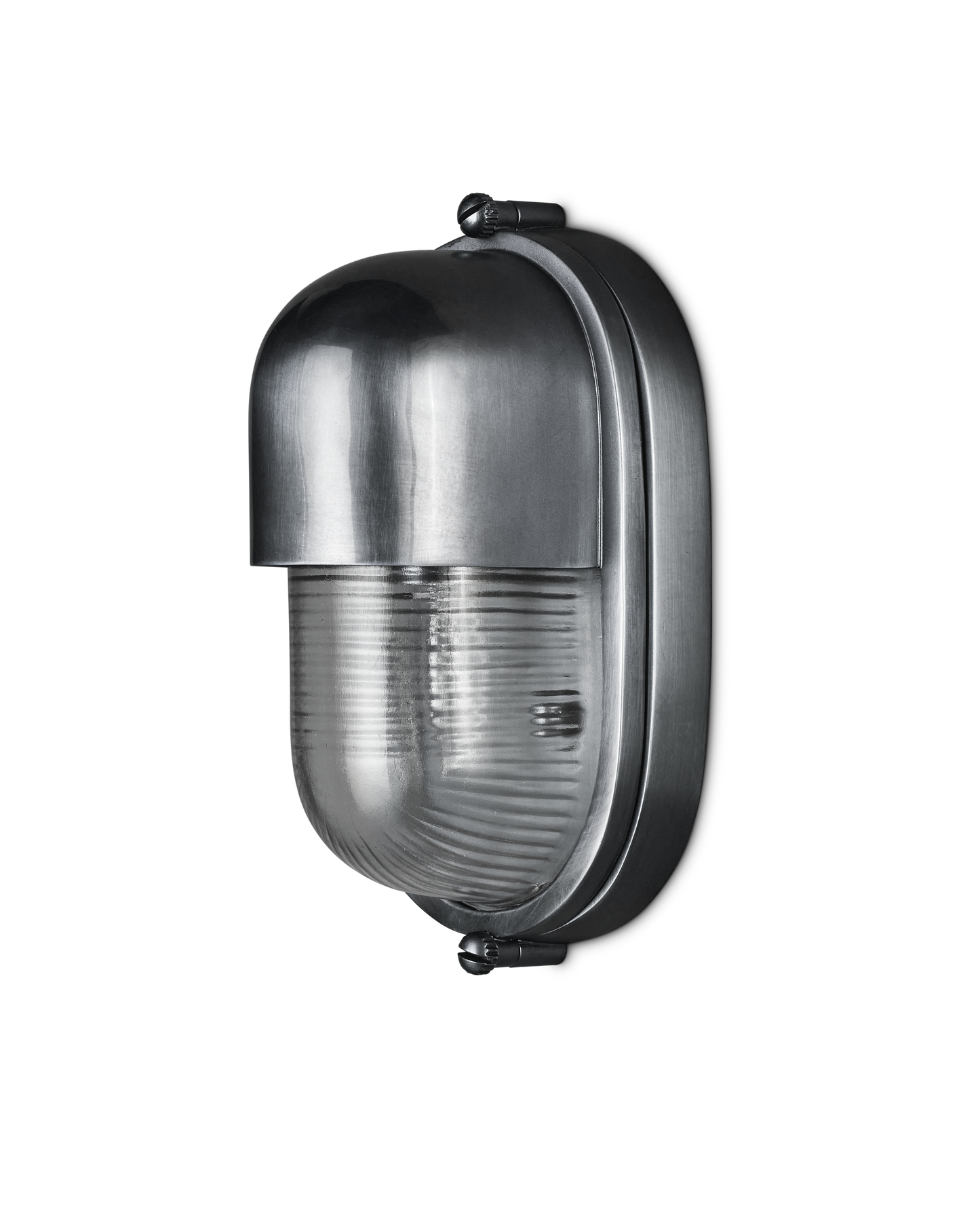 The Maritime Silver Outdoor Wall Sconce has its sea legs, so to speak, given it has the quintessential design attributes that have sailed the oceans for centuries. The antique silver-finished brass body that holds the ribbed glass shade in place gleams even when the lights are off. This silver outdoor sconce is a perfect choice for coastal environments given its stylistic notes harken to luxury yachts and schooners.