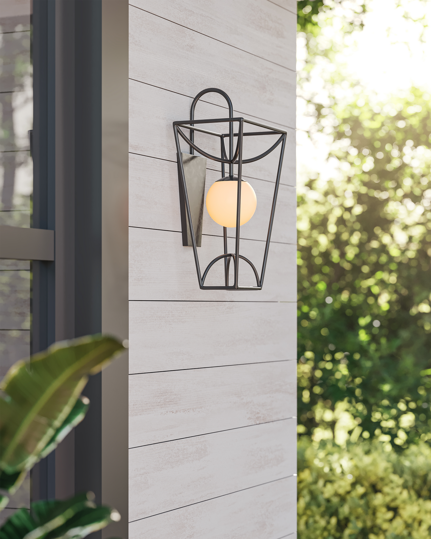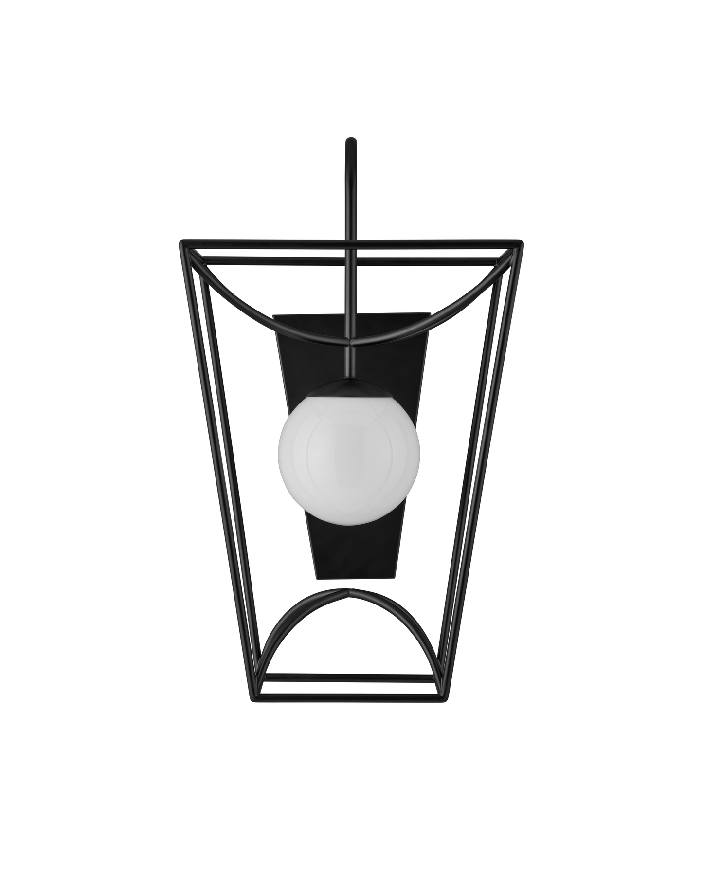 The Rochefort Small Wall Sconce is an outdoor fixture with beautiful lines that subtly draw themselves into a lantern-like form. The black powder-coated finish makes it durable for exterior environments and contrasts the milky white glass globe that it balances in its center. Whereas traditional lanterns may be limited to time-honored and transitional design aesthetics, the delicacy of the profile of this black outdoor sconce makes it fitting for mid-century modern homes and those that lean contemporary.