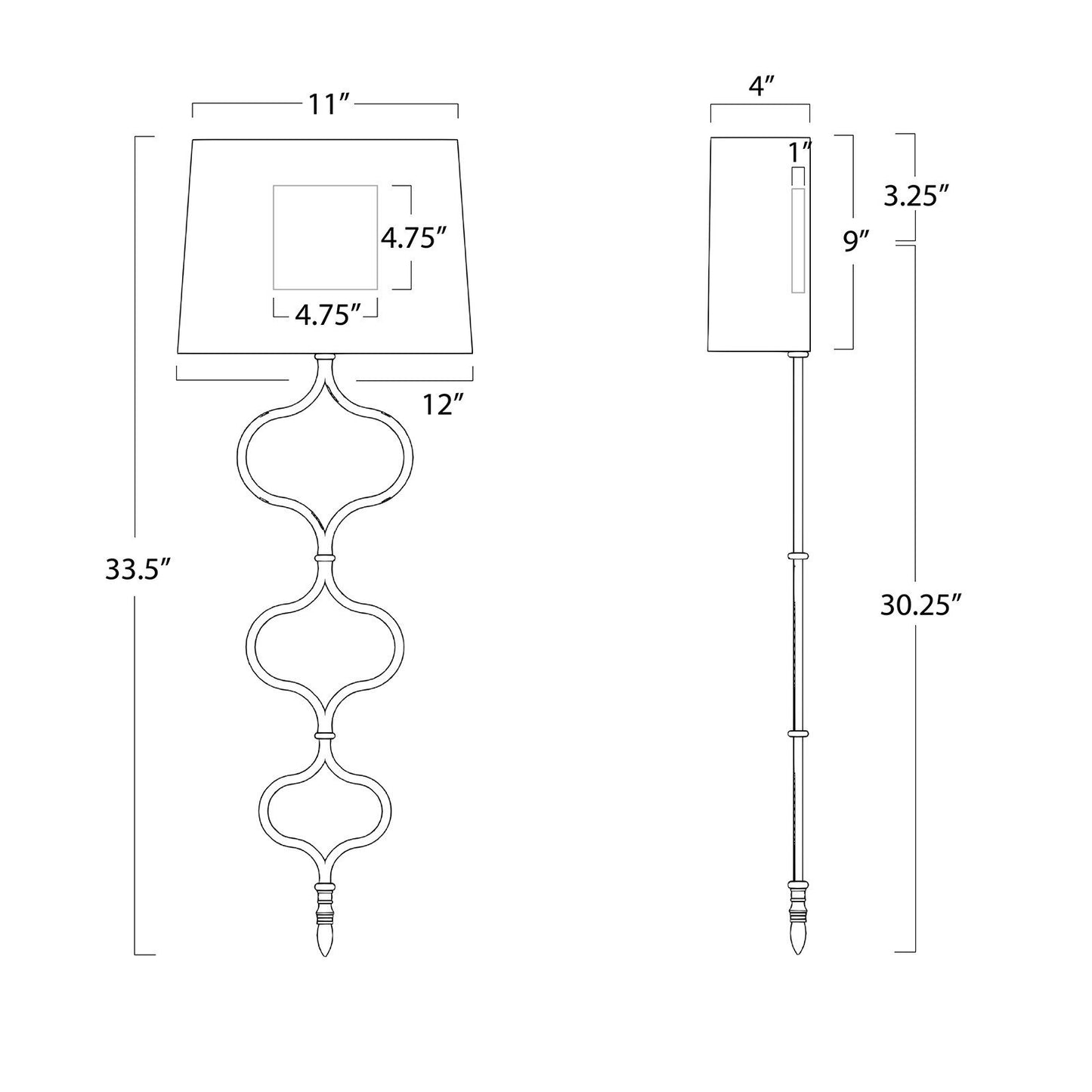 With a rich finish, the elegant twisting pattern of the Sinuous metal sconce creates a stylish statement. A contemporary natural linen shade completes the classic look.