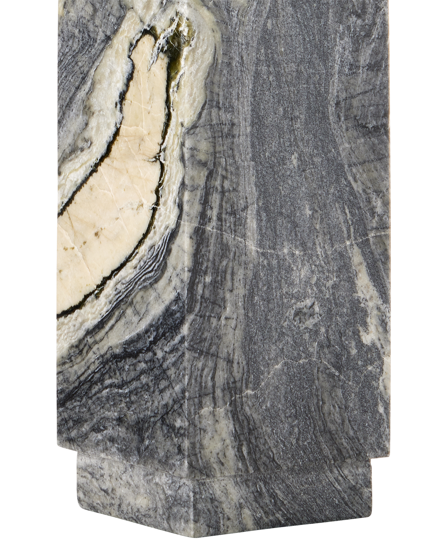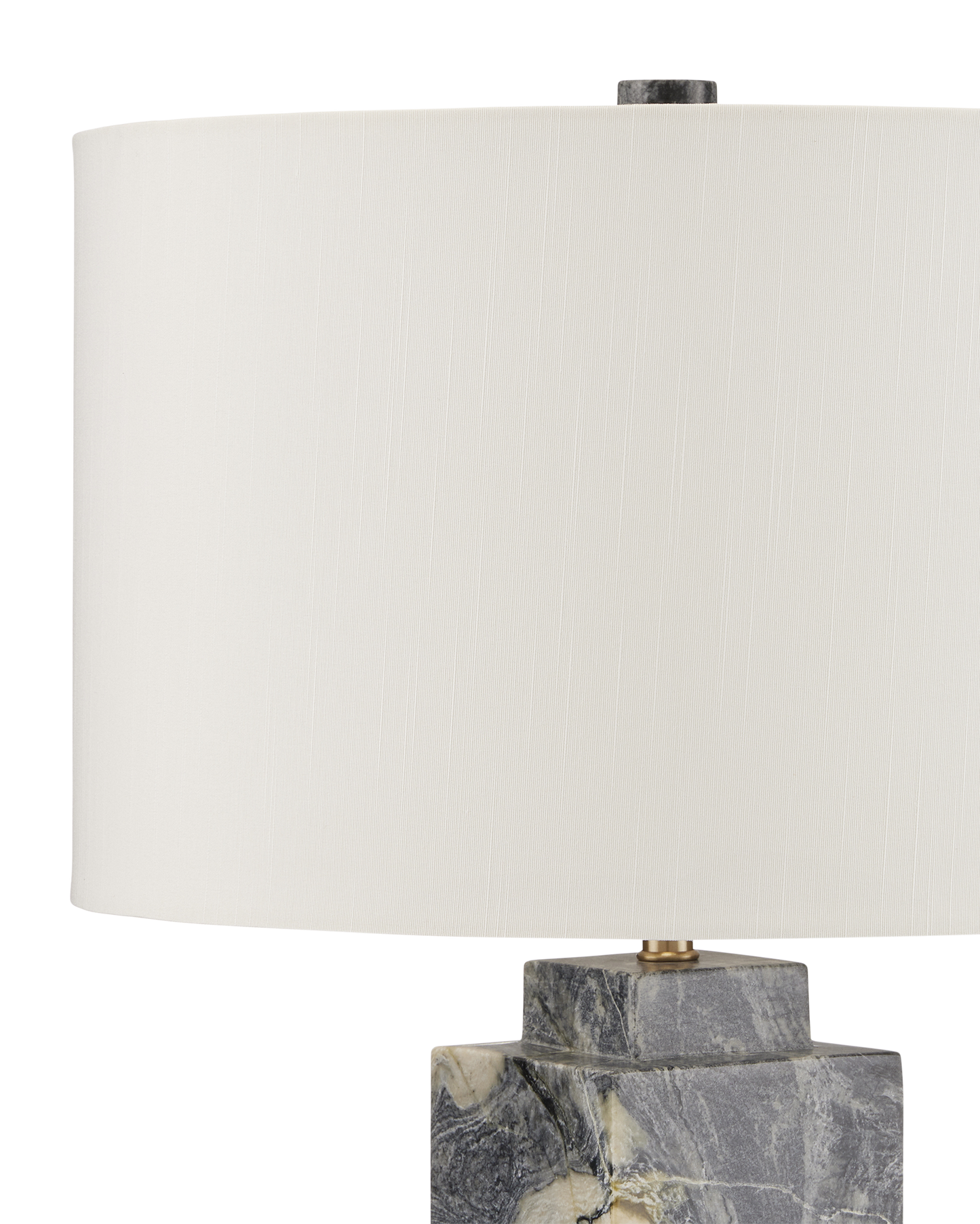 The Ashlar Jade Marble Table Lamp showcases one of nature's true works of art. Made of Floral Jade Marble, the gray lamp features a simple shape that allows the material to be the star of the show. The character in the stone varies from piece to piece, making each lamp one of a kind. The Ashlar is topped with an off-white shantung shade, and the hardware is finished in brass, adding a touch of elegance to the design.