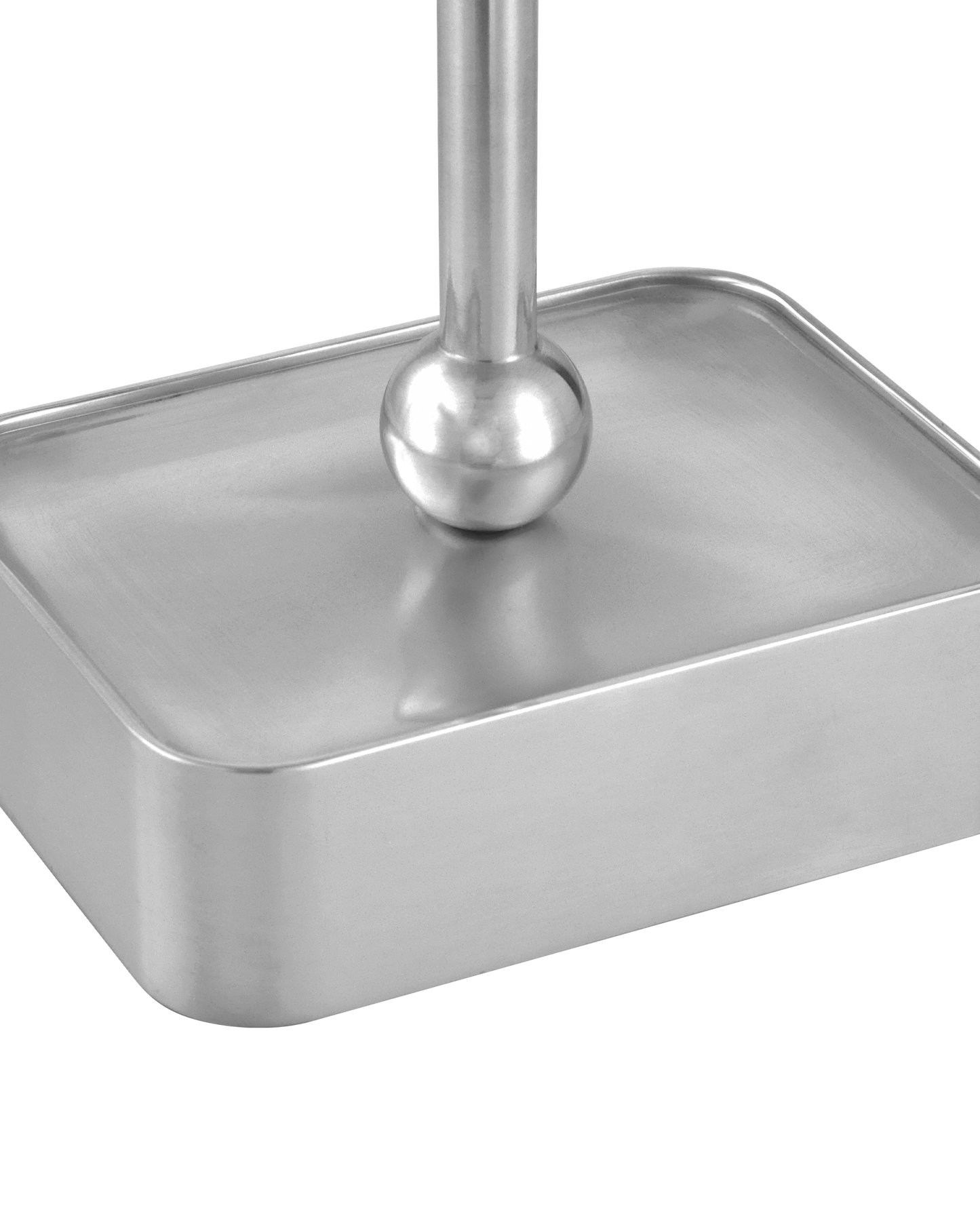 The Gadabout Nickel Cordless Table Lamp is a silver lamp that is easy to move from room to room given it is fitted with a rechargeable bulb. The light source sits atop the thin stem beneath a matching metal shade in a polished nickel finish. The on/off switch is on the top of the bulb and the shade is finished on the inside for a luxe touch.