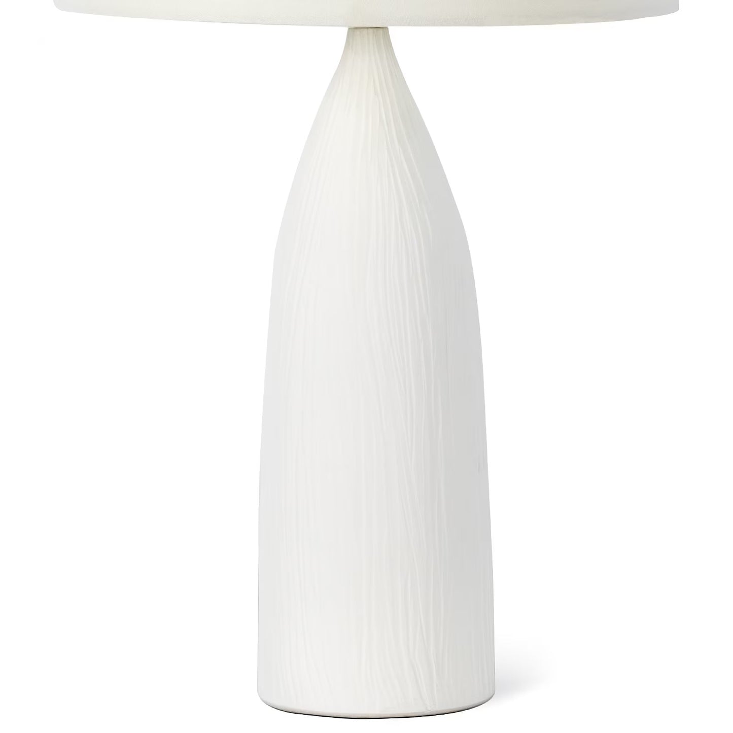 The hand-carved line details of the Hayden provide a simple yet refined design. A clean silhouette made of matte white ceramic allows you to place this lamp in any space to enhance a relaxing atmosphere.