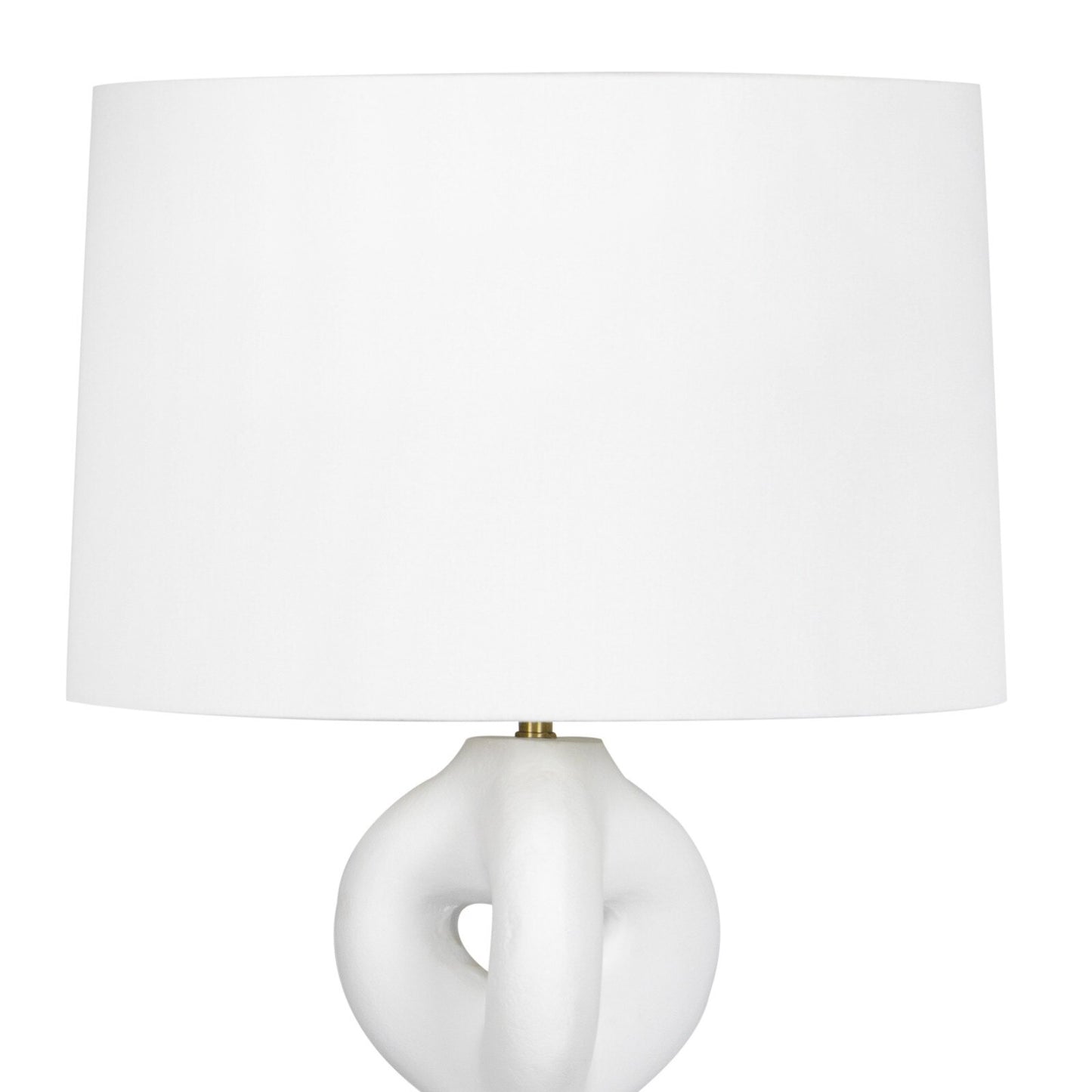 The Jacob Metal Table Lamp has a unique, sculptural shape paired with a white, plaster-like finish. Think folk art with a modern twist. Complemented by a crisp, natural linen shade and natural brass fittings, the Jacob Table Lamp would sit beautifully in a living room, home office or bedside tables.