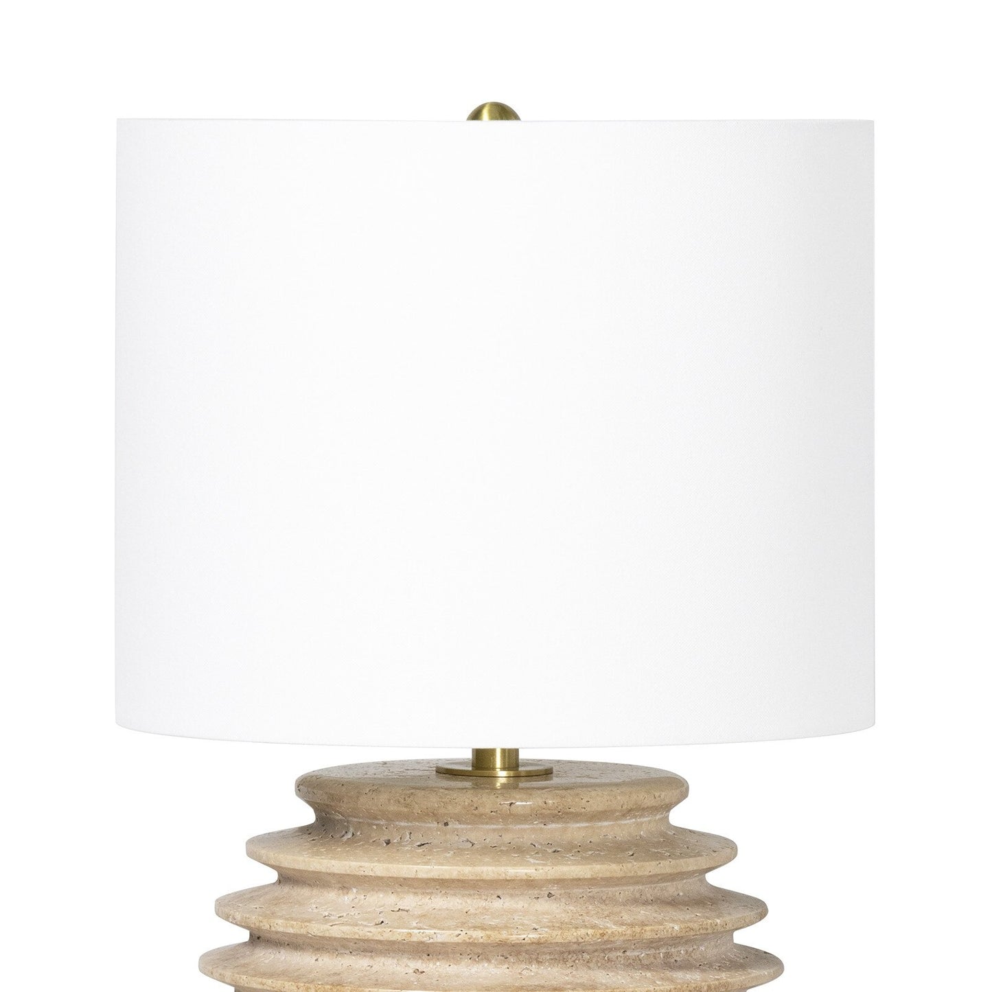 The Thea Lamp is made of natural travertine, a highly valued material making each lamp a one-of-a-kind piece. Its textured surface and warm glow create an inviting ambiance that will be enjoyed for many years to come. Elevate your interior with this lamp that not only illuminates but also adds a distinct touch of nature to your space.