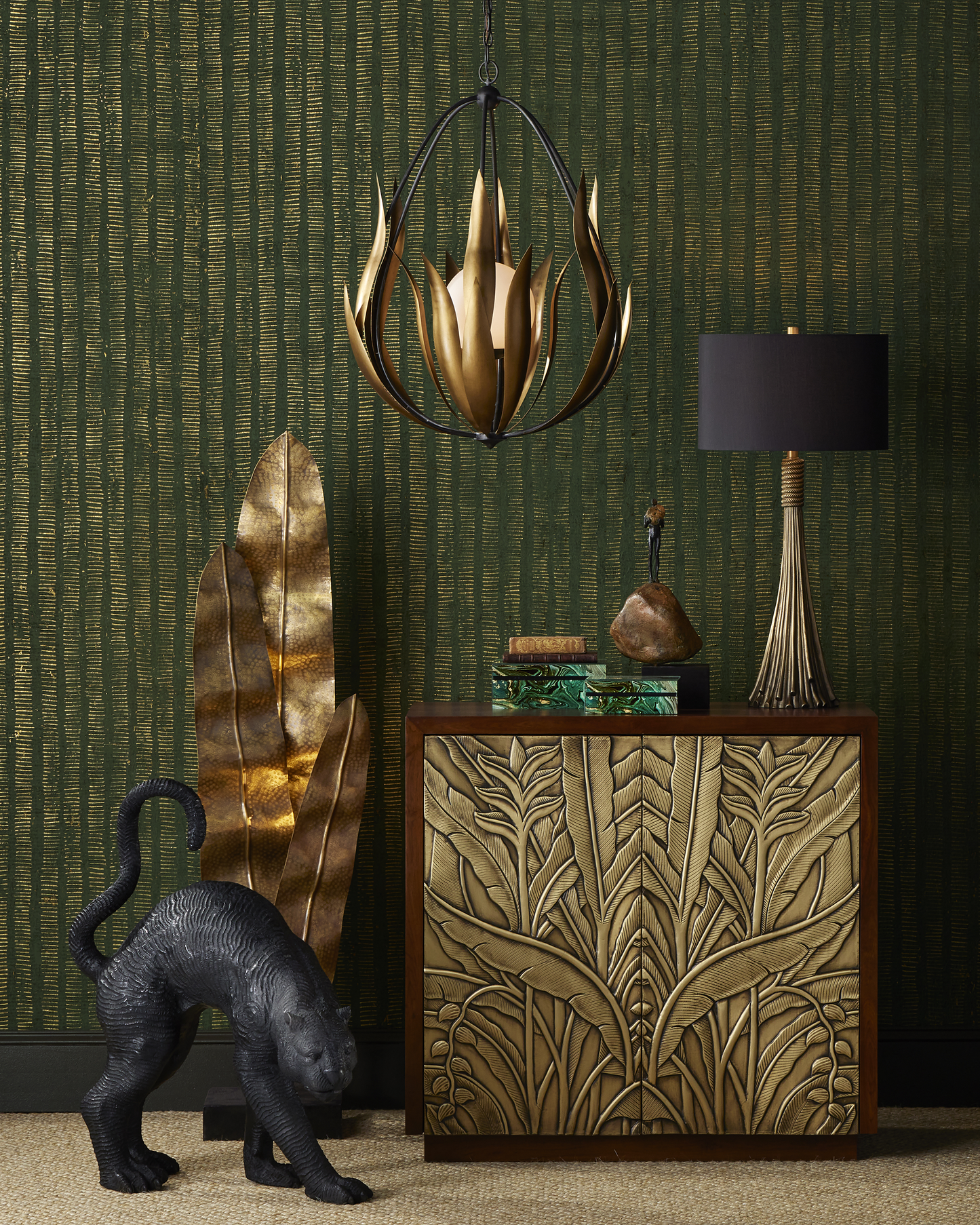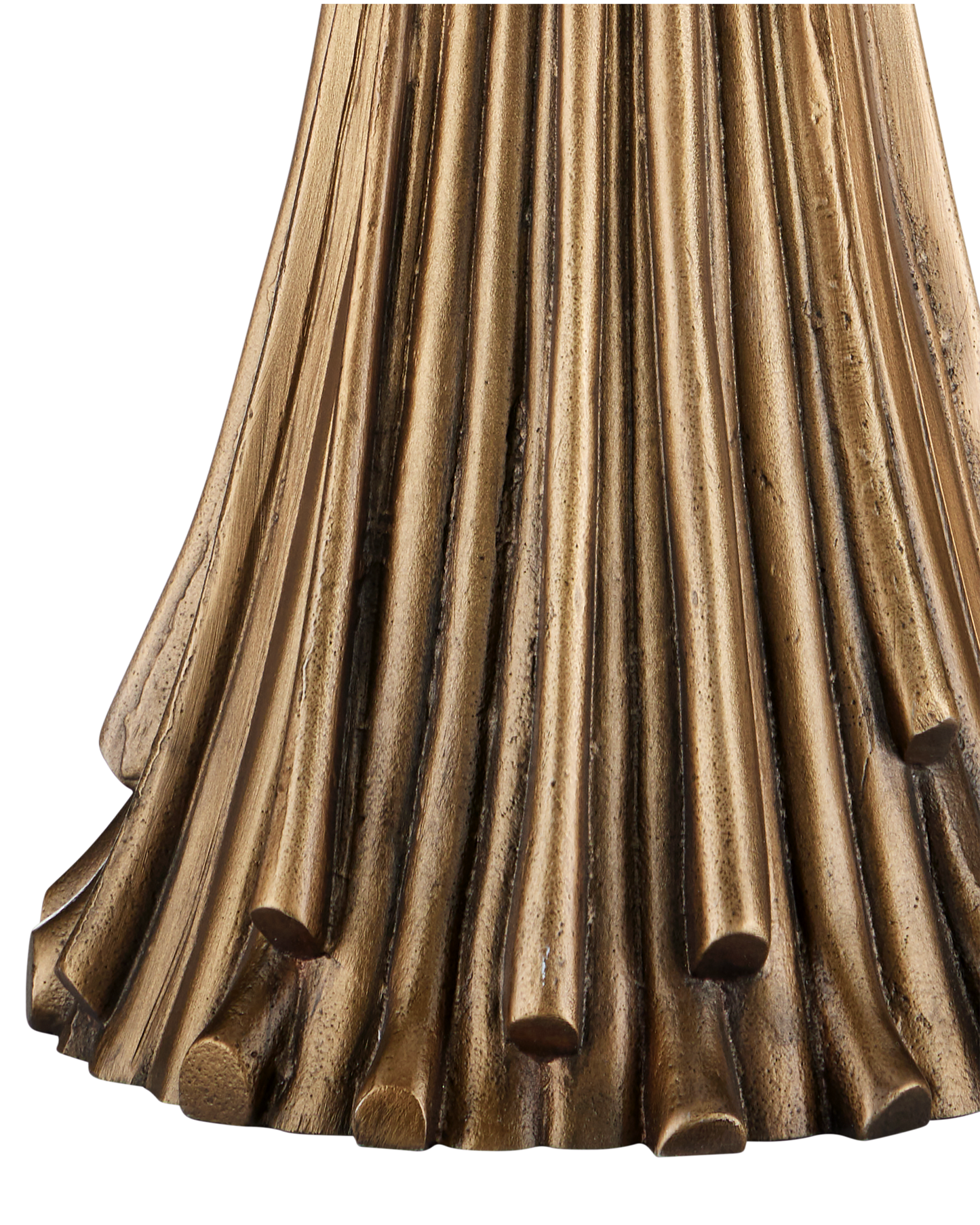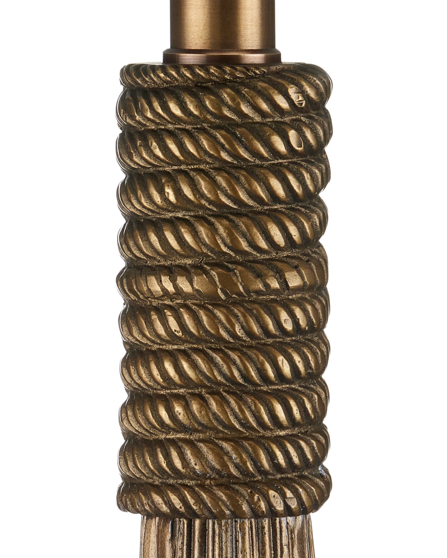 A beautiful representation of an interior ornamentation that rose to popularity during the early 17th century, the Baroque Table Lamp is shaped like a luxurious tassel. The convincing sense of movement it reflects is all the more impressive because it is made of aluminum. An antique brass finish and the black shade make their own statements within this luxe composition.