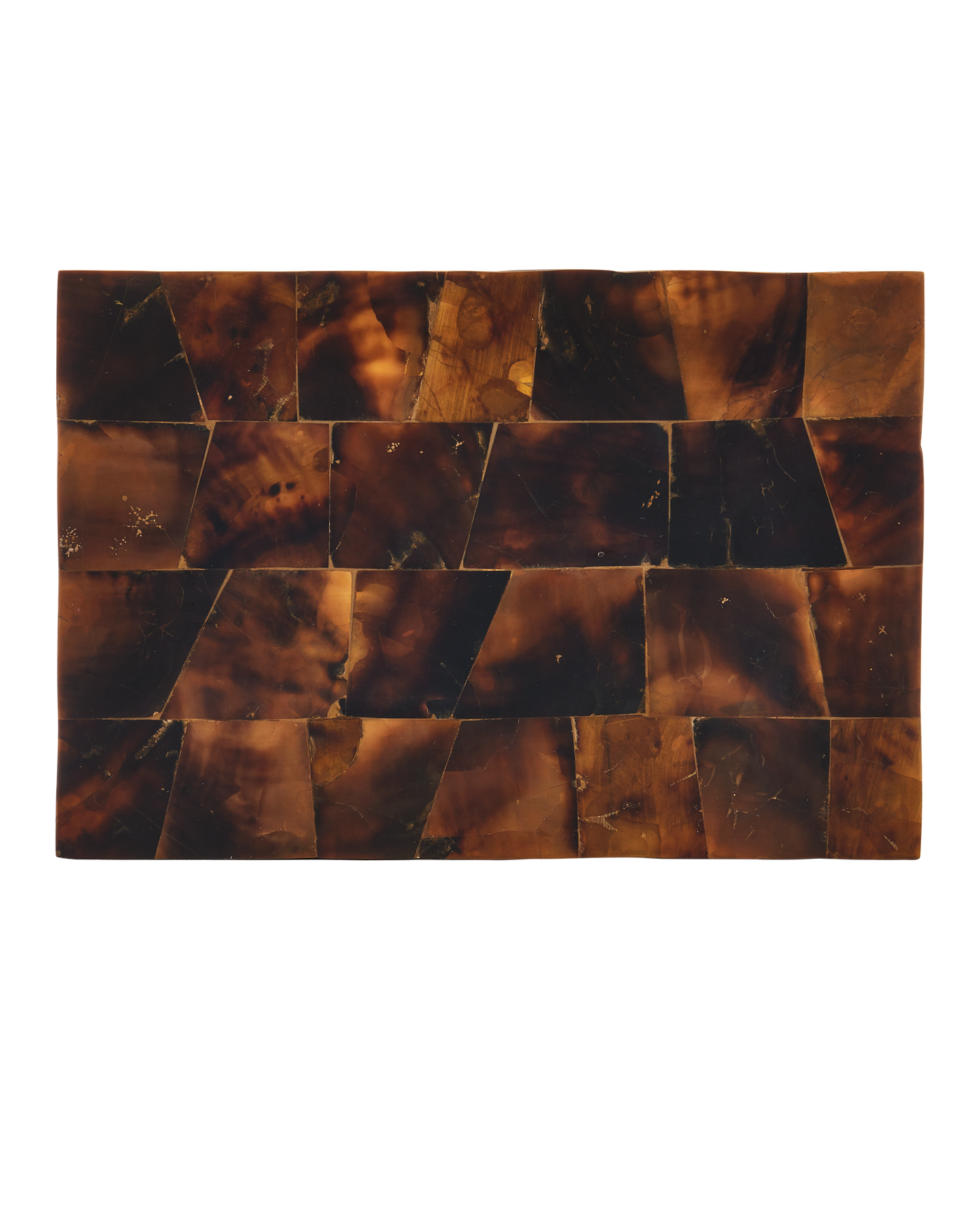 The Casey Brown Box has artisanal surfaces clad in pieces of natural penshells applied like a sophisticated puzzle. Rims of brass-finished stainless steel which enhance the warmth of the design. Though sealed, it is not watertight and should not contain water.