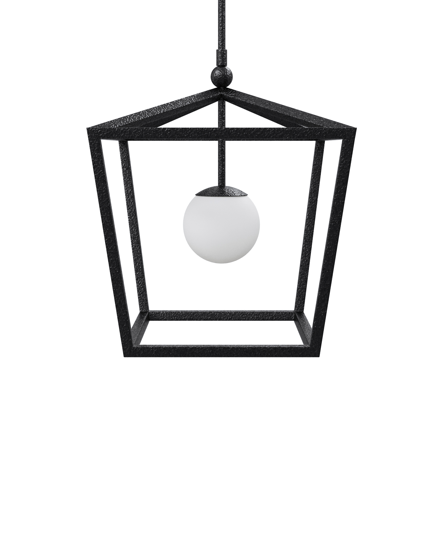 The Denison Medium Black Outdoor Lantern has a wrought-iron frame in a black powder-coated finish. This classic lantern shape has one light surrounded by a glass globe to create a soft glow. The black finish adds subtle texture to the surface of the metal and the connecting rods that suspend it are architectural accents. The Denison is wet location-tested so it is ideal for lighting patios and porches, and this lantern is a terrific choice for hanging above large outdoor loggias. Adjustable from 26.5" to 68.5" with use of included chain/rod kit/cable. If your space calls for a longer drop, additional chain/rods/cable is available for purchase.