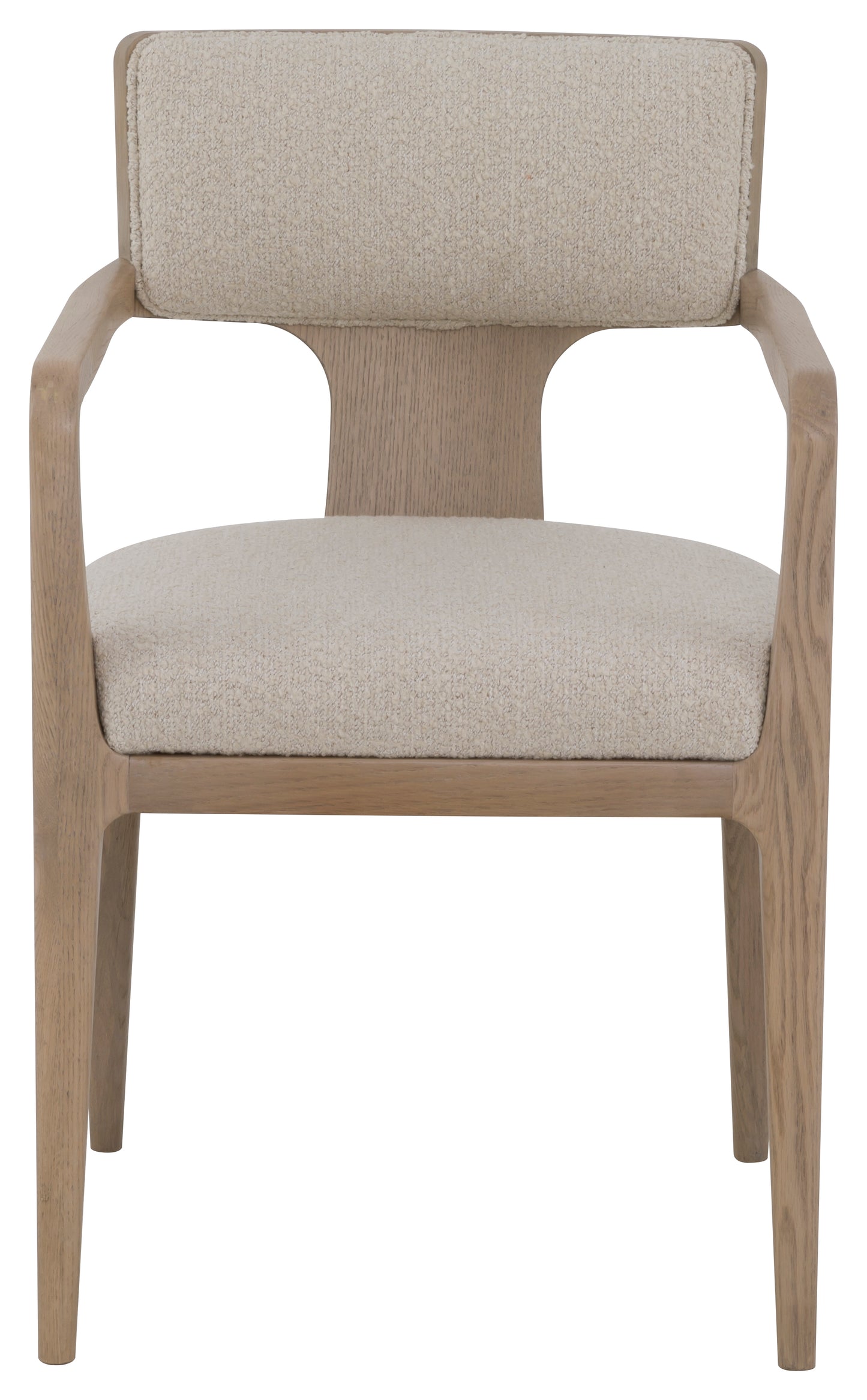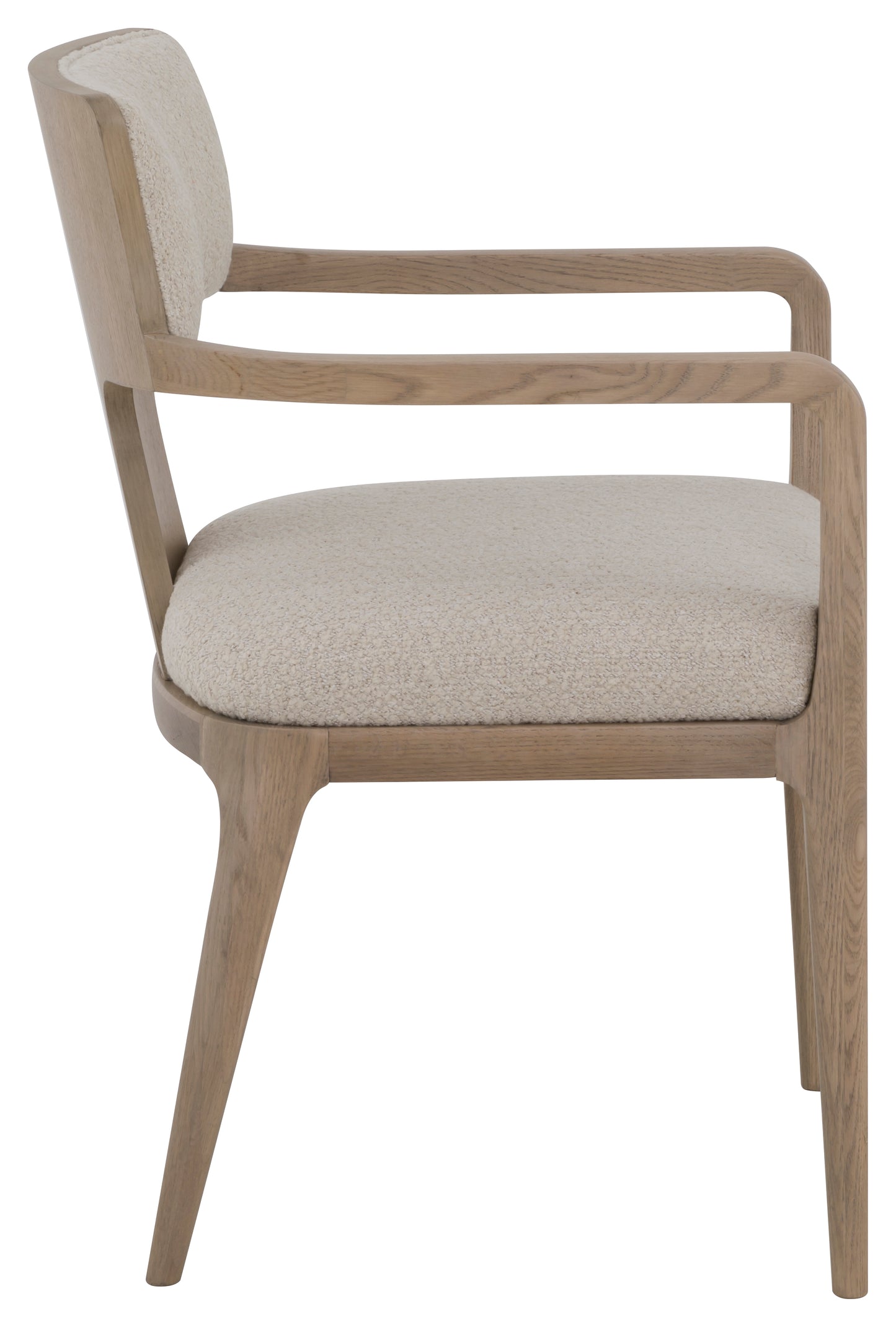 Regular price $852.75A modern arm chair with soft boucle upholstery and sculpted wood arms. Clean lines and comfort, perfect for dining or a reading nook.