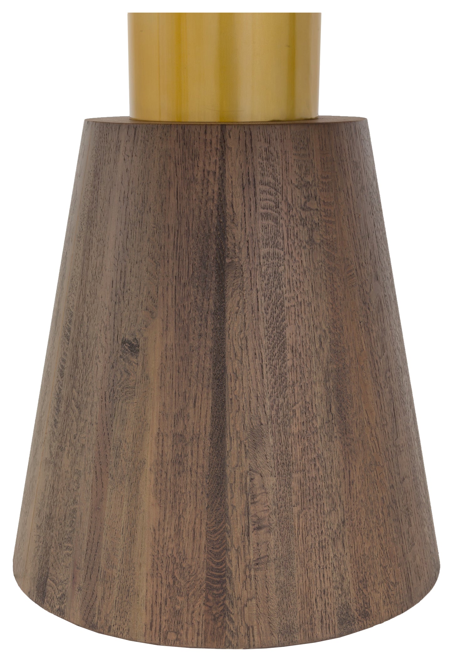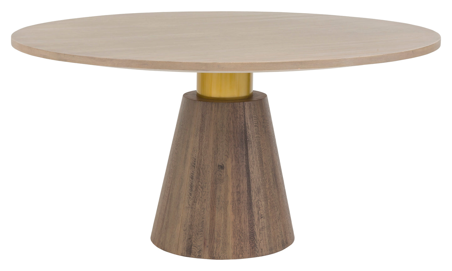 Regular price $3,035.25This modern pedestal dining table features a warm, two-tone wood finish and a striking brass accent, blending timeless craftsmanship with contemporary elegance.