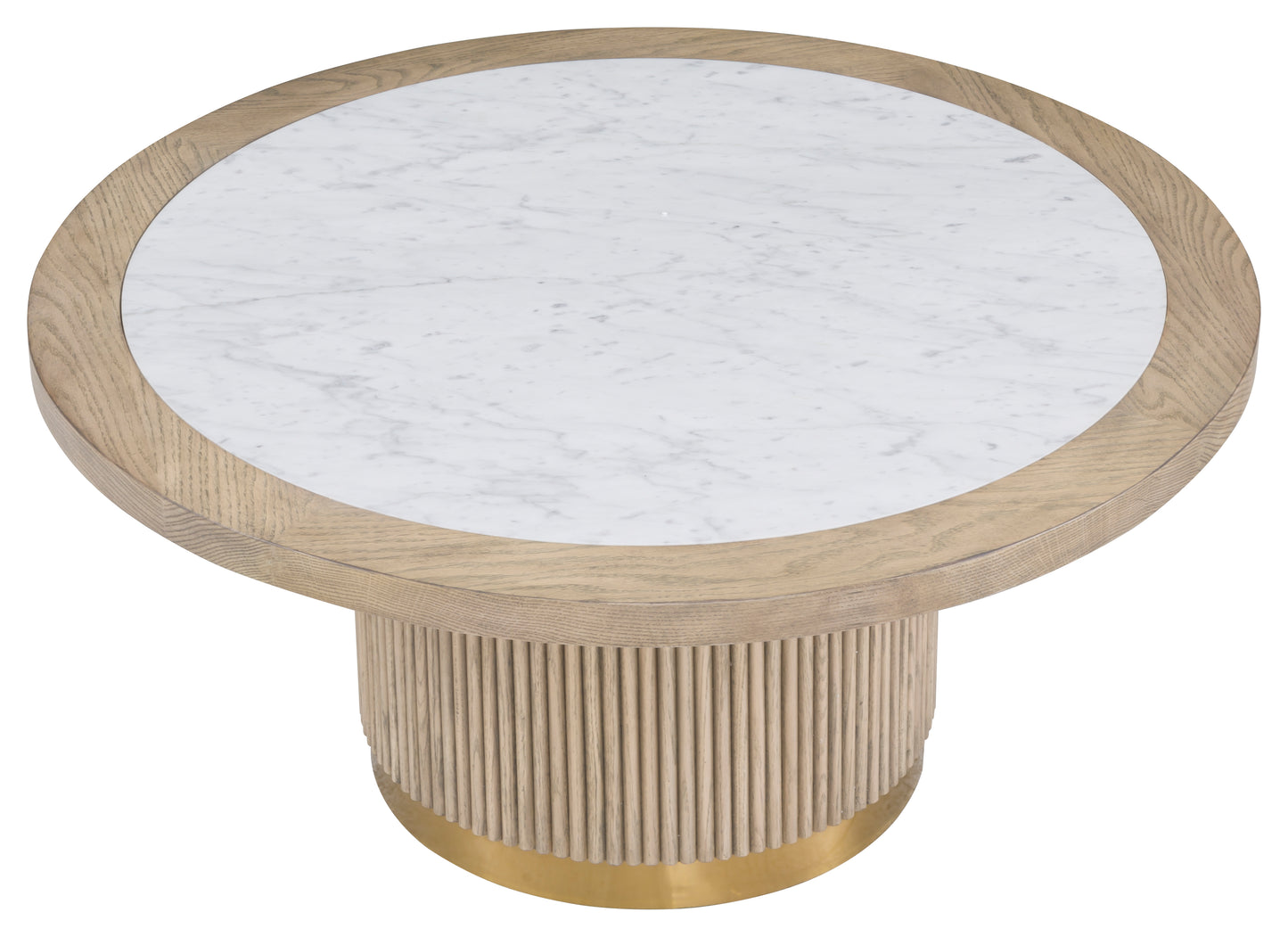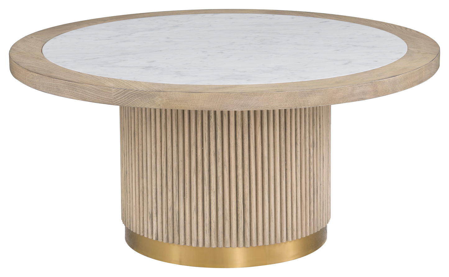 Regular price $1,800.00A striking blend of fluted wood, white marble top, and brass base detailing, this cocktail table makes a bold, elegant centerpiece in any living room.