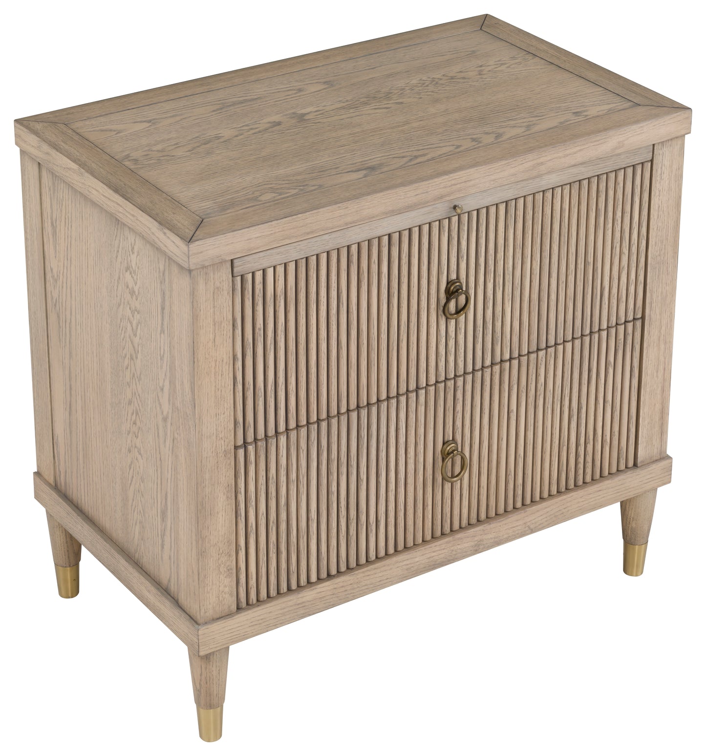 Regular price $1,179.00Featuring two spacious drawers and a hidden pull-out shelf, this nightstand combines modern function with classic fluted detailing and brass hardware. A timeless piece that adds warmth and texture to your bedside.