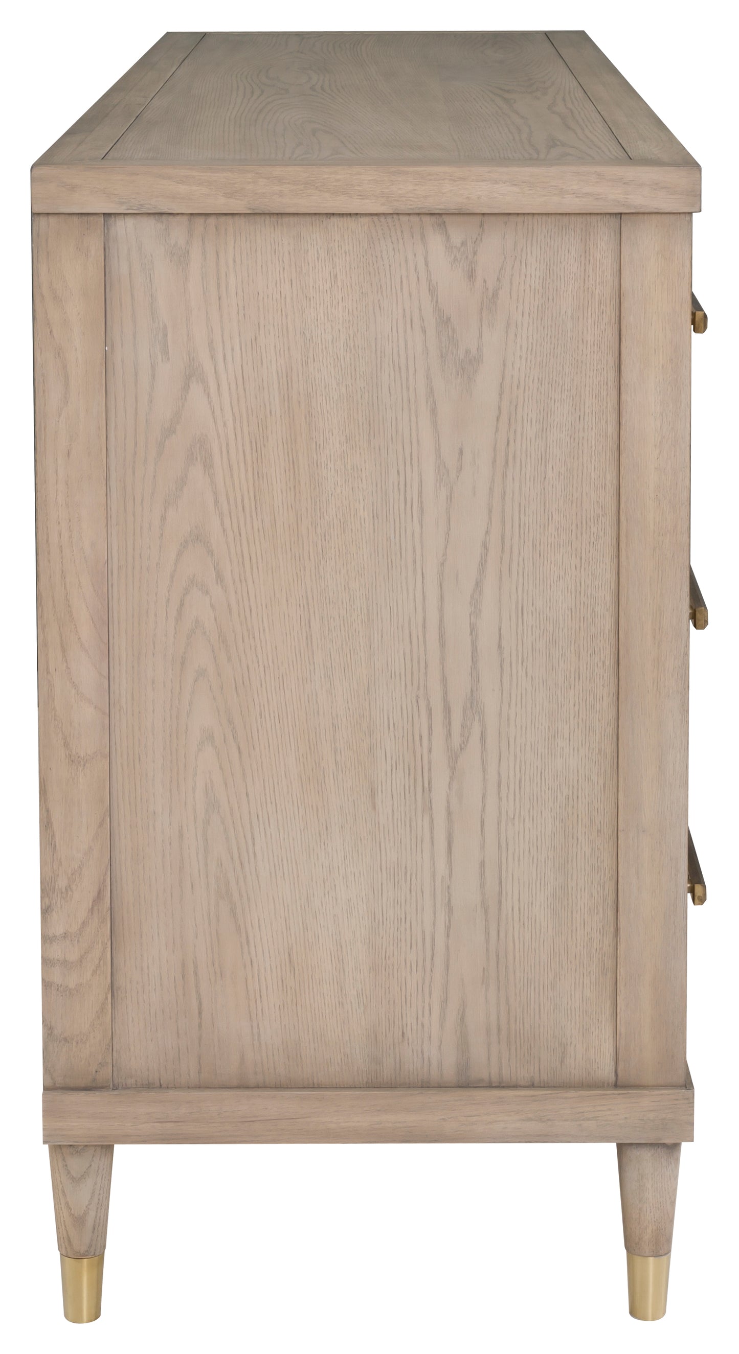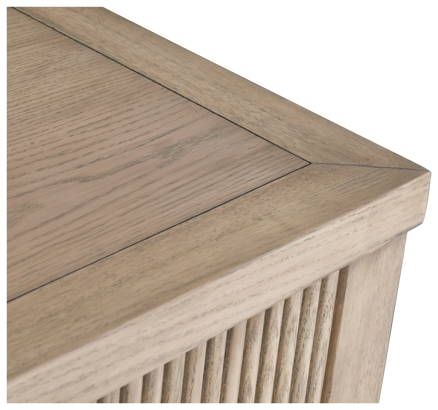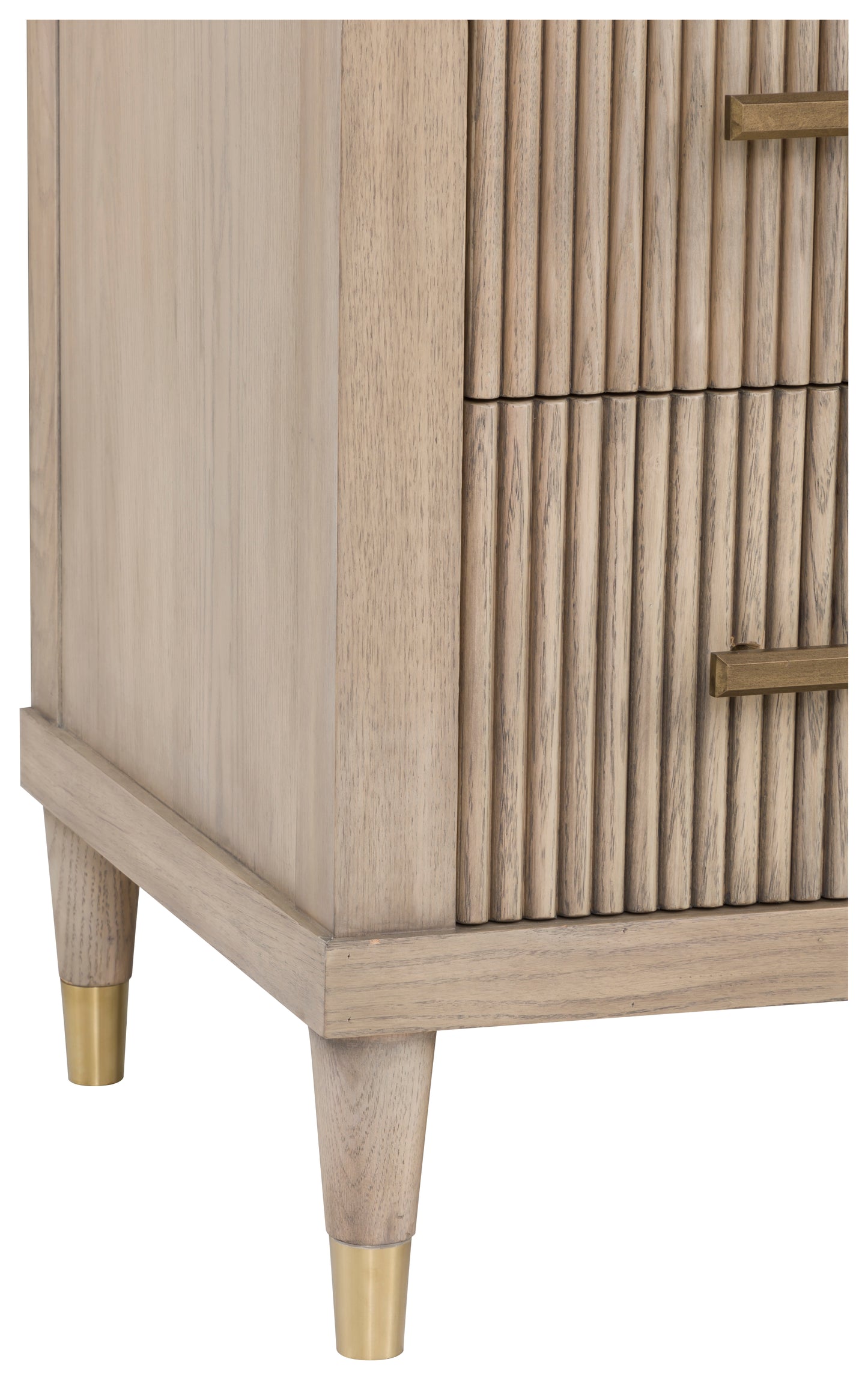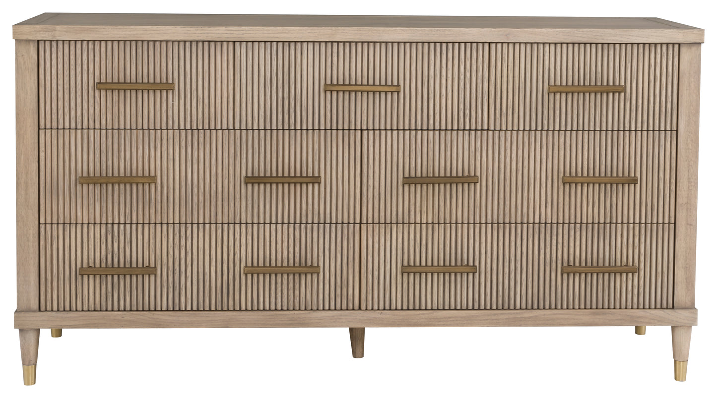 Regular price $2,598.75Sculptural tambour detailing meets everyday function in this spacious seven-drawer dresser. The Biscotti-finished wood and antique brass pulls offer timeless elegance with modern texture.